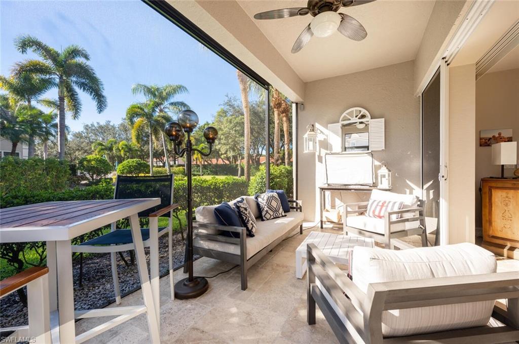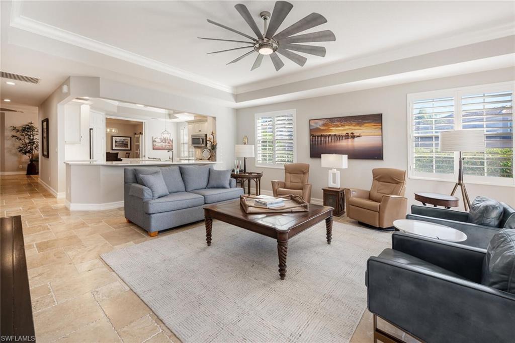 Set within the Westchester enclave of Kensington, this well-appointed coach home presents a thoughtful layout, refined finishes, and a lifestyle centered on comfort and livability. The open, well-proportioned floor plan allows the main living areas to flow naturally, creating a light, connected atmosphere enhanced by a timeless, neutral backdrop. The eat-in kitchen features a clean, contemporary aesthetic with an airy design that naturally draws people together for both casual meals and entertaining. A dedicated office or den, highlighted by elegant glass barn doors, offers a versatile space for work, reading, or quiet retreat. Both bathrooms are finished with a cohesive, clean aesthetic, providing comfortable, well-appointed spaces for residents and guests alike. A private guest wing further enhances the home’s functionality, offering an ideal arrangement for visitors or extended stays. Additional cabinetry in the laundry room adds practical storage without sacrificing design. Outdoor living is equally inviting, with a screened lanai that opens to wide, open views and features a power retractable sunshade for customizable comfort throughout the day. Sliding plantation shutters at the patio entrance introduce refined architectural detail while offering effortless privacy and control. Whether enjoying peaceful days at home or exploring resort-style community amenities, Westchester offers a relaxed rhythm within one of Naples’ most sought-after neighborhoods. An ideal opportunity awaits to move right into a residence that’s already thoughtfully updated and ready to enjoy from day one.
