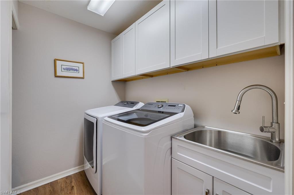 Looking for Bundled Golf?? Look no further! This beautifully renovated carriage home is well-appointed with 3 bedrooms (or it could be a den as it's used now) 2 full baths. Large bedrooms with new LVP flooring. Updated baths, with neutral tile, cabinetry and quartz countertops. The primary bedroom has new flooring, an updated bath and access to the screened balcony. The light and bright kitchen has stainless steel appliances, new quartz countertops and new LED recessed can lights, along with an eat-in kitchen area looking out over the golf course. The living room has volume ceilings and an adjacent dining area. The unit is bright and cheery complete with plantation shutters and the screened lanai has sliding "polyglass" for added protection from the elements...and our occasional cool nights! Come check out all this unit has to offer and then enjoy the clubhouse, pool, tennis and GOLF! Residents are very busy here! Close to Florida's beaches, Naples, RSW, world-class shopping and delicious dining. Come see this property today!