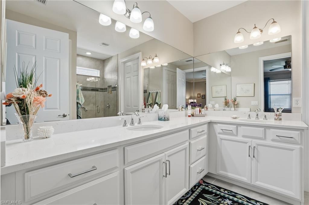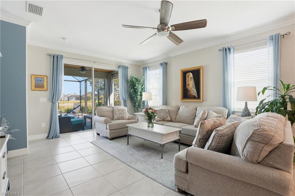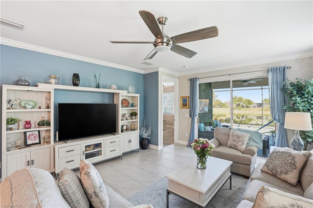Welcome to the highly sought-after Willow floor plan in Seasons at Bonita! This beautifully appointed 3-bedroom, 2-bath home offers a bright, open layout with elegant upgrades throughout and stunning lake views with a tranquil fountain as your backdrop. The heart of the home opens to a private heated, saltwater pool and screened lanai, creating seamless indoor-outdoor living ideal for entertaining or relaxing while enjoying peaceful water views. Inside, you’ll find crown molding throughout, a thoughtfully designed custom pantry, and a spacious primary suite featuring a custom master closet. The garage has epoxy floor and double overhead storage. A Culligan whole-home water treatment system adds comfort and quality to everyday living. This home also features an epoxy-coated garage floor and solar panels, keeping average monthly electric bills around $75 (including surge protection). Without, bills are closer to $50. The property is not located in a flood zone, offering added peace of mind and lower ownership costs. Seasons at Bonita is known for its low HOA dues and serene setting, surrounded by preserve land while remaining conveniently close to shopping, dining, beaches, and major roadways. With continued growth and development in the area, this community offers both lifestyle and long-term value. Whether you’re looking for a full-time residence, seasonal getaway, or investment opportunity, this move-in-ready home delivers exceptional value, efficiency, and location.