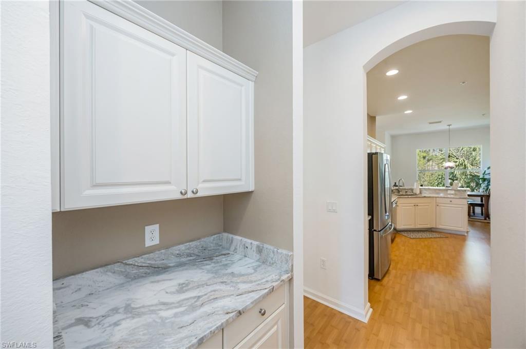 Experience the perfect blend of privacy and natural beauty in this immaculately maintained and freshly painted end-unit condo in Madison Park. Spanning 2,296 s.f. under air, this spacious 3-bedroom plus den residence lives like a single-family home, offering the convenience of a 2-car garage and a layout designed for effortless flow. Step out to your expansive lanai to take in peaceful preserve views that offer a true sense of sanctuary. The northeastern orientation ensures the outdoor space remains comfortable for year-round enjoyment. Inside, the home offers natural light only an end unit can provide, accented by soaring ceilings with recessed trays. The heart of the home is the open kitchen, featuring stunning new Dolomite countertops, brand new stainless steel appliances, and a dedicated dry bar—an ideal station for your morning coffee. The adjacent morning room is large enough to accommodate a full-sized dining table, providing the unique flexibility to use the additional formal dining area as a den, or expanded living space. Recent updates provide peace of mind, including an A/C unit and water heater, and brand new washer and dryer. Beyond your door, enjoy quiet strolls along the community’s six scenic lakes, lounge by the community pool, or take a 15-minute drive to the award-winning beaches and world-class dining of 5th Avenue South. A brand-new Whole Foods Market planned to anchor a major mixed-use development at the nearby corner of Davis and Santa Barbara Boulevards, with groundbreaking tentatively set for 2027. Additionally positioned for easy access to Marco Island and I-75, this home offers a location as seamless as its interior. With every detail meticulously addressed, all that's left is for you to step in and start enjoying the Florida sanctuary you’ve truly earned.