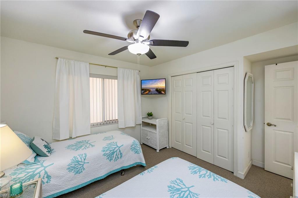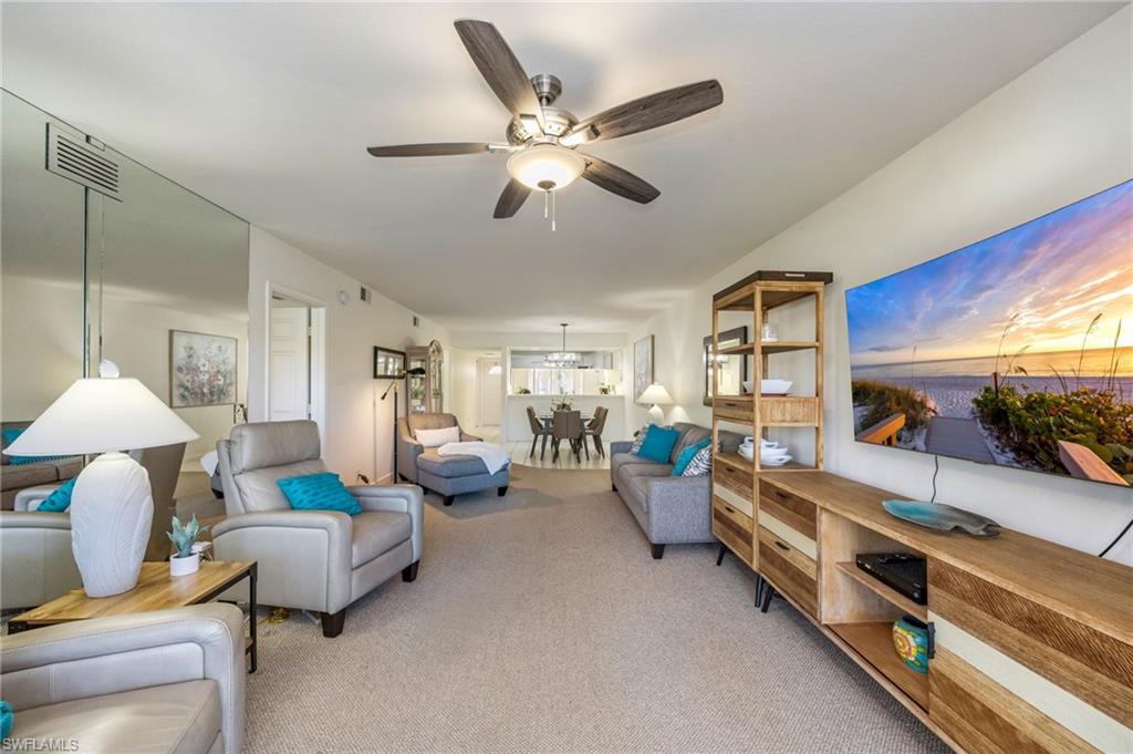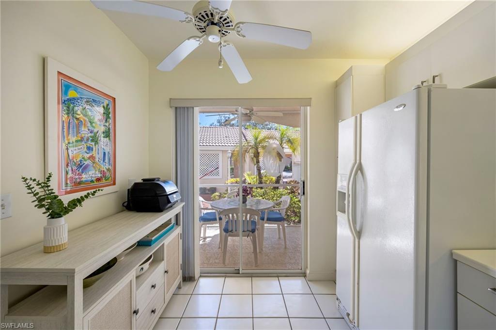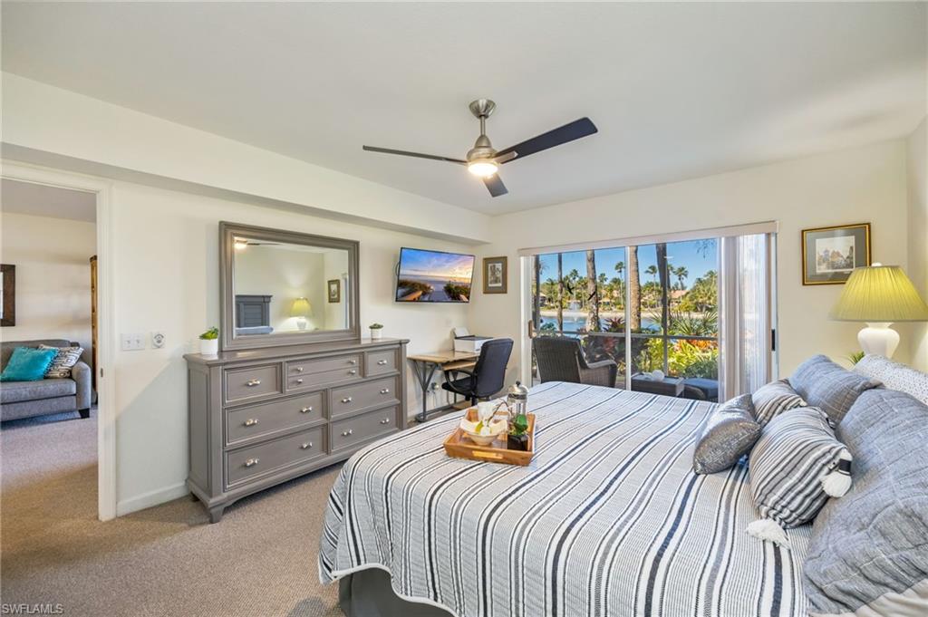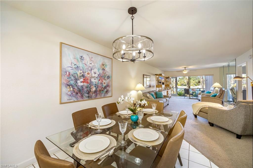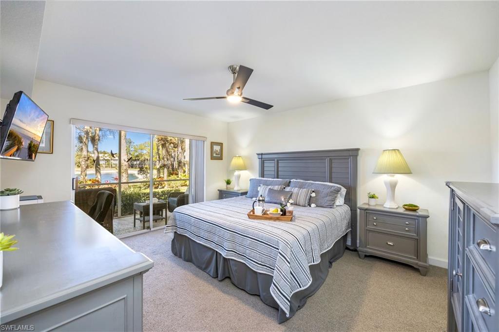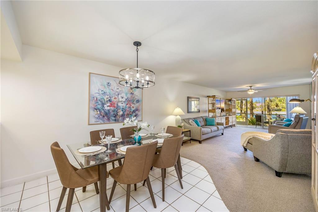 Trade in your snow boots for flip-flops and step into effortless Southwest Florida living - this turnkey, lakefront retreat is move-in ready and waiting for you. Ideally located in the heart of Naples, this impeccably maintained ground-floor end unit delivers sun-drenched interiors, serene water views, and exceptional versatility as an investment property, low-maintenance vacation home, or full-time residence. Set within the sought-after community of Falling Waters, this residence captures breathtaking lake views from nearly every angle and features two screened lanais—one welcoming guests at the front entry and another overlooking the water at the rear - perfect for morning coffee, sunset cocktails, and year-round indoor-outdoor living. Mature landscaping and abundant natural light enhance the peaceful, private setting. The spacious living room and dining area flow seamlessly into a bright, well-appointed kitchen with solid-surface countertops, crisp white cabinetry, and custom under-cabinet lighting - ideal for entertaining or relaxed everyday living. The primary suite is a tranquil retreat with lake views and direct access to the rear lanai, while the guest bedroom offers generous space and a nearby bath, ensuring comfort and privacy for visitors. Additional highlights include a private storage room, a covered single-car carport, and upgraded plumbing, offering additional peace of mind. With favorable rental policies, this property stands out as an attractive income-producing opportunity with strong demand for seasonal and annual rentals. Residents of Falling Waters enjoy 24-hour gated security, cascading waterfalls, one of the largest resort-style pools in Southwest Florida, an active clubhouse with social events, Har-Tru tennis courts, bocce ball, and shuffleboard. All of this is just minutes from 5th Avenue South, premier dining and shopping, and Naples’ world-famous white-sand beaches. Turnkey, lakefront, and investment-ready - this is the Southwest Florida lifestyle you’ve been waiting for.