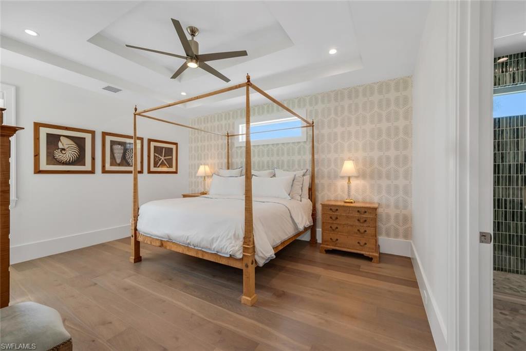 Privacy exemplified in this Stunning Luxury Estate located in Old Naples between the Four Seasons Naples Beach Resort and 5th Ave S. Entertainment District. This custom Old Naples home is expertly crafted through the combined vision of MHK Architecture & Planning, Freestyle Interior Design, and Gulfshore Homes. This spectacular 2024 home embodies sophistication, with 1,250 SF expansive primary suite includes a large bedroom and sitting area, dual closets completely finished with custom cabinetry and a home office with a stunning view through a full glass wall. Open flowing floor plan provides stunning views of a water feature as you enter the home. With 5,674 square feet of living area, the residence boasts an array of exquisite features, including extensive ceiling detailing and a spacious great room. 10’ tall sliding glass door walls accompanied by hidden electric screens and shades showcase the pool, sun area, fire pit, and spacious yard. The air-conditioned lanai features accordion style impact glass sliders, electric screens, summer kitchen and television/entertainment area. A kitchen that is a chef's dream features a under-lit Cristallo quartzite 104' x 54" island, Wolf® 8 burner gas range, top-of-the-line appliances, complemented by a butler’s pantry with a wine refrigerator, Miele steam oven, Miele coffee station, ice-maker, 2nd dishwasher, and more. Stunning bar off kitchen boasts an Alex Turco backlit back bar. Visually impressive glass wine cellar flanked by a stunning open staircase with spectacular multi-tiered chandelier. Second-floor guest bedrooms each offer en suite baths, a living room with option for complete privacy to main living area. Unique for Old Naples with features like a large .34 acre homesite featuring a 112’ wide elevation, a private extensively landscaped yard with full size pool, expansive sun deck, fire pit, and room for outdoor recreation, social gatherings, or private putting green. This amazing residence is located on an extremely quiet street with a large horseshoe drive with parking for 10 cars, and only 3 blocks to the beach. The roof deck offers a peek of the gulf and stunning views of three lakes. A fifth bedroom is currently set up as an exercise room with infrared sauna and a steam shower. Laundries are located on both the main living area and 2nd floor. The luxurious pool features a wading/sunning shelf and waterfall. For the automotive enthusiast, the 3-car garage with power outlet for electric vehicle charging and room for 3 lifts. 2nd story floor solid poured concrete for peace of mind quite separation. The home features a full home Generac® generator with transfer switch and 1000-gallon buried propane tank, along with Carrier’s most advanced HVAC, the Carrier Infinity®, with humidity and mold prevention. Home is prepped for installation of an elevator. Toto Washlet+® automatic water closets featured in the primary bath and powder room. This residence is truly a haven of tranquility and privacy.