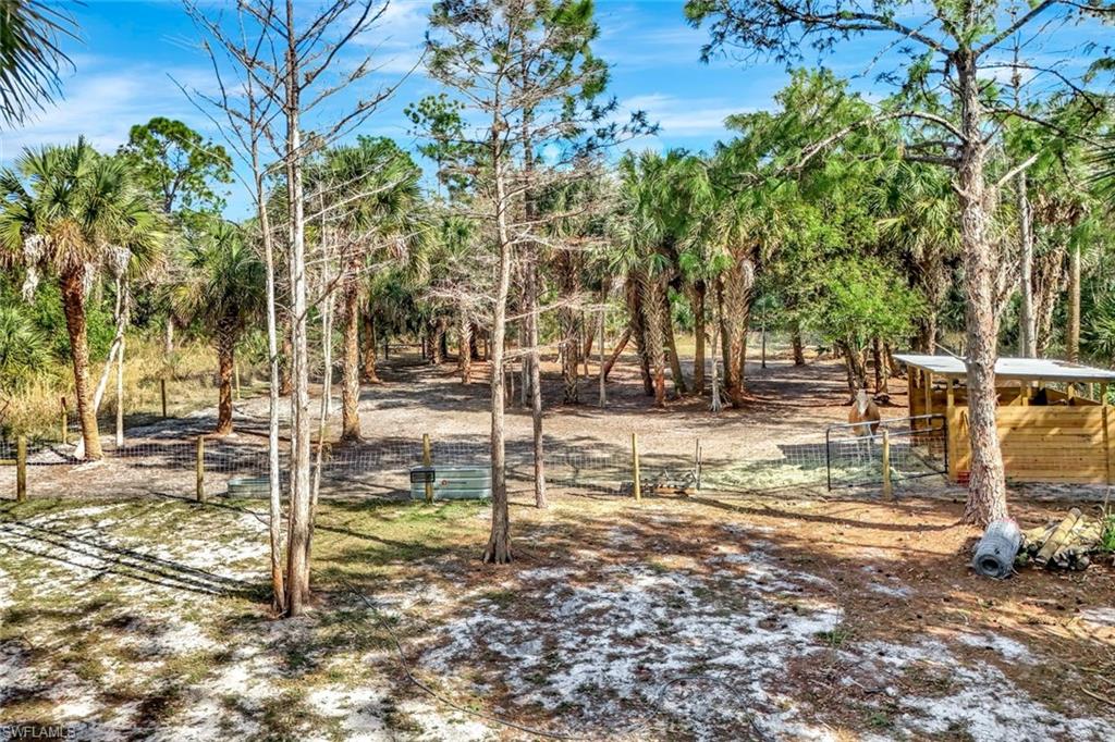 This exceptional Naples residence combines refined finishes with privacy and convenience in an ideal setting. The home features elegant 24x36 tile throughout and a striking volume-ceiling entryway highlighted by custom ceiling and a beautiful designer light fixture. Designed with an open-concept floor plan and detailed ceilings, the main living areas flow effortlessly, creating an inviting space ideal for both everyday living and entertaining. At the heart of the home is a chef’s kitchen anchored by a large island with seating, offering the perfect place to gather and chat with family and guests. The kitchen is thoughtfully appointed with stainless steel appliances, a gas cooktop with pot filler, under-cabinet lighting, a coffee bar, and a beverage center. A large laundry room with pantry space and sink, along with abundant storage throughout the home, enhances everyday functionality. The spacious primary suite provides a serene retreat with pendant bedside lighting, an enormous custom-designed walk-in closet, and a luxurious spa-like bathroom showcasing high-end finishes. Three additional guest bedrooms feature custom closet built-ins and are complemented by two beautifully designed guest baths with floor-to-ceiling tile—one with a walk-in shower and one with a bathtub— accented by mounted mirror sconces. Outdoor living is equally impressive, featuring a covered outdoor kitchen with gas cooktop and an oversized patio overlooking a private backyard, horse stall, and an abundant variety of fruit trees. The property offers ample room to add a pool while still maintaining generous space for animals or a large garden. Enjoy the best of both worlds—peaceful privacy with close proximity to everyday conveniences. Two Publix stores, shopping, restaurants, and gas stations are just minutes away, with Immokalee Road and Collier Boulevard approximately seven minutes from the property. Experience sunny, warm Naples living at its finest.
