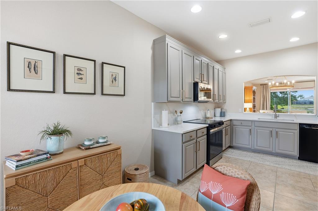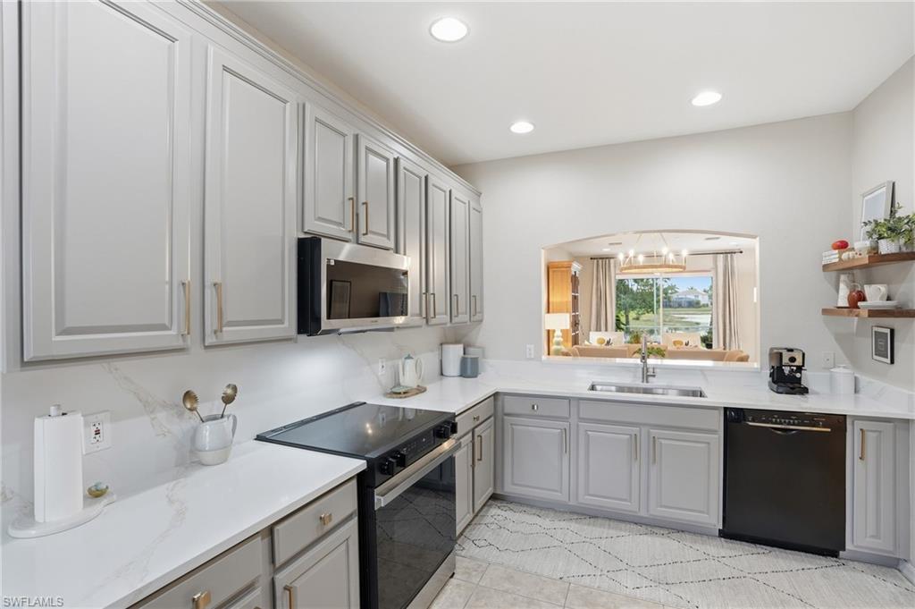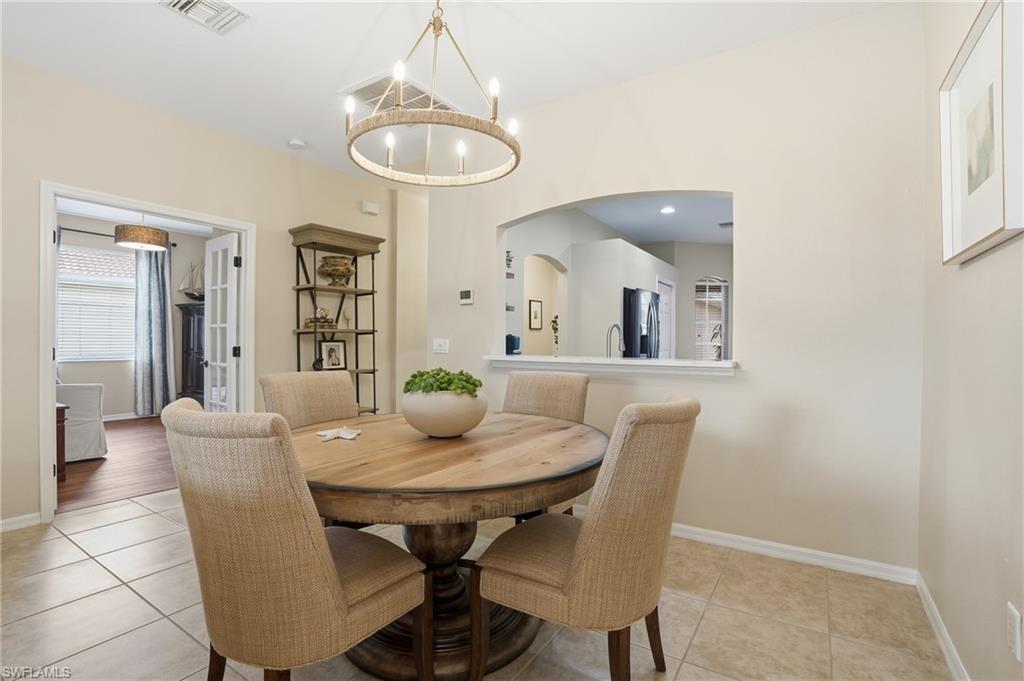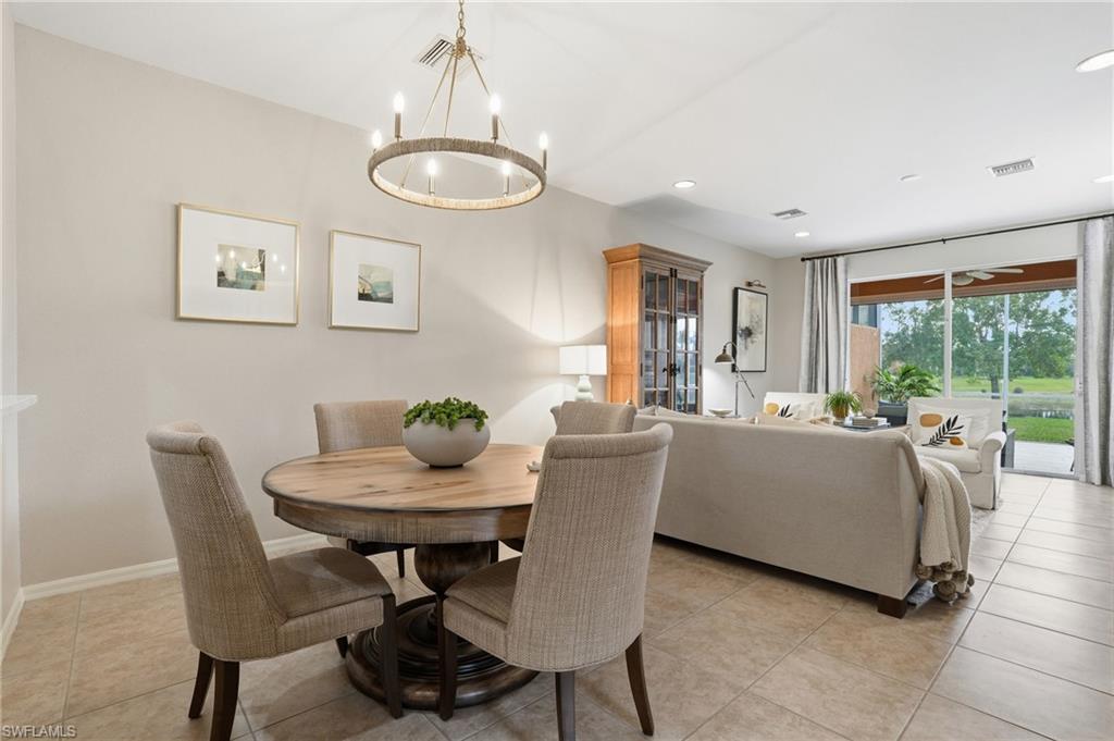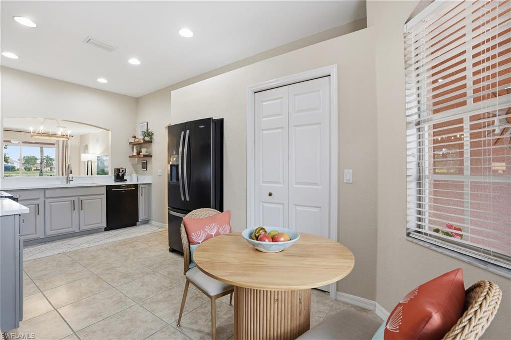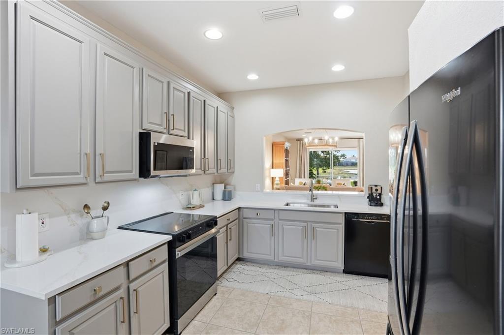 Welcome to this beautifully updated home located in the highly desirable Reflection Lakes community, where no flood insurance is required. This meticulously maintained residence offers peace of mind with major system improvements and stylish modern updates completed throughout. Significant mechanical upgrades include a roof replaced in 2019, A/C system replaced in 2023, and a water heater installed in March 2024, providing long-term reliability for the next owner. The kitchen has been thoughtfully refreshed with a modern countertop and backsplash, a large single stainless-steel sink, updated garbage disposal system, and upgraded appliances, creating a functional and inviting space ideal for both everyday living and entertaining. Interior enhancements completed in 2024 include refinished kitchen and bathroom cabinetry with updated hardware, decorative trim added to kitchen cabinets, updated light fixtures in the dining room and bathrooms, and an updated ceiling fan in the guest bedroom. The primary bathroom features updated shower doors, while comfort-height toilets have been installed throughout, along with professionally cleaned plumbing lines. Floor plan modifications improve functionality and natural light, including the removal of the sliding door in the primary bedroom to create additional wall space. Also, the addition of a French door in the third bedroom, allowing extra light to flow into the dining area. Additional improvements include an epoxy-coated garage floor, professionally cleaned HVAC ductwork, a freshly pressure-washed roof, and a recently replaced lanai screen and door featuring durable no-see-um screening, allowing comfortable outdoor enjoyment year-round. Offering numerous thoughtful upgrades, modern finishes, and a prime location within Reflection Lakes, this move-in ready home delivers the perfect blend of comfort, style, and convenience.