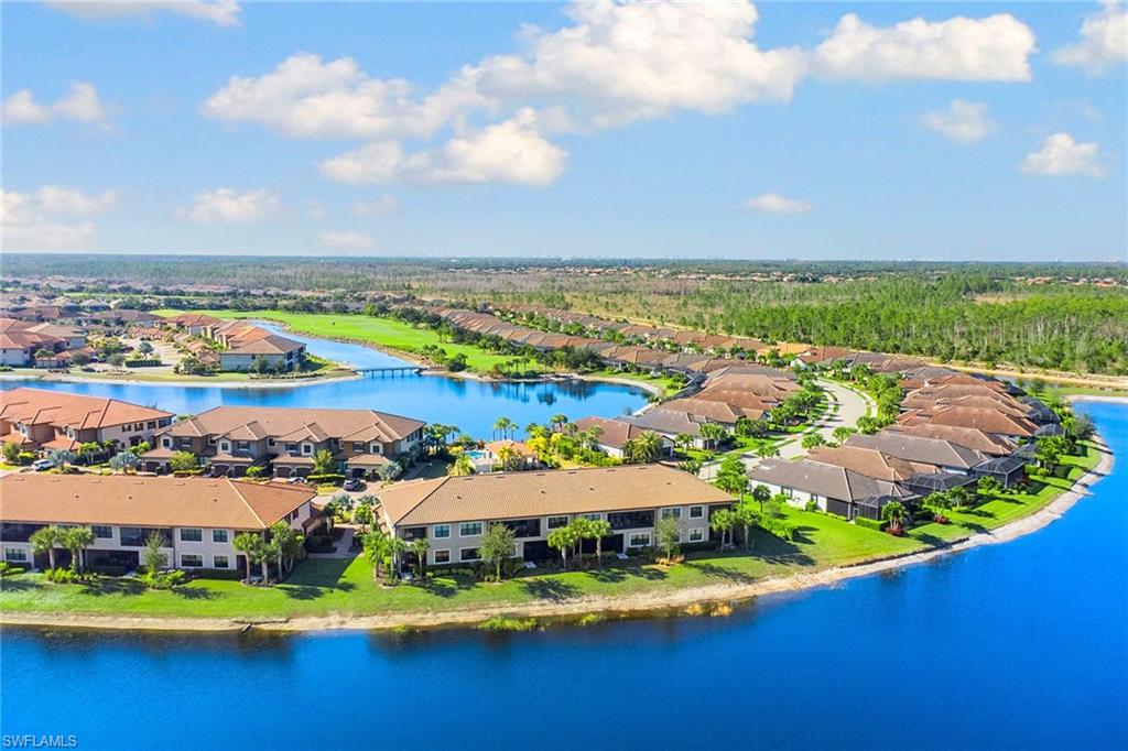 Experience the pinnacle of coastal luxury in this 2020-built Bellisimo VII coach home in North Naples. This rare second-floor residence boasts serene lake views from both the front and rear, ensuring a tranquil backdrop from every room. Offered fully furnished with high-end curated decor, the interior features stunning light oak wide-plank flooring, volume tray ceilings, and an electric fireplace. The chef's kitchen is a masterpiece, featuring upgraded GE Café appliances in matte white with brushed bronze hardware, quartz counters, and a custom backsplash. Hurricane impact windows offer peace of mind while framing gorgeous water views. For ultimate convenience, the neighborhood pool is located directly across the street. This property includes a SOCIAL MEMBERSHIP ONLY, granting access to Esplanade Golf & CC's resort lifestyle: the new Culinary Center, Bahama bar, resort pool, wellness center, tennis, pickleball, and walking trails.