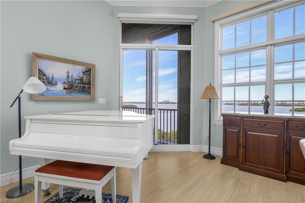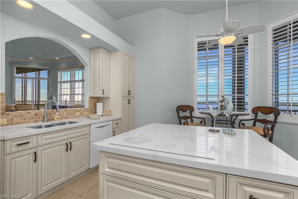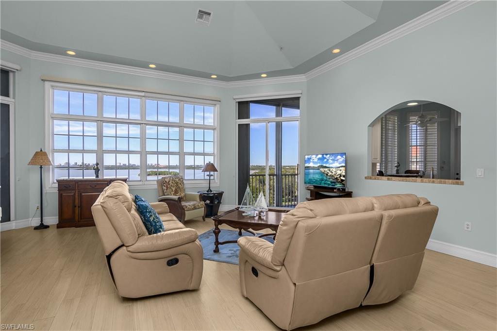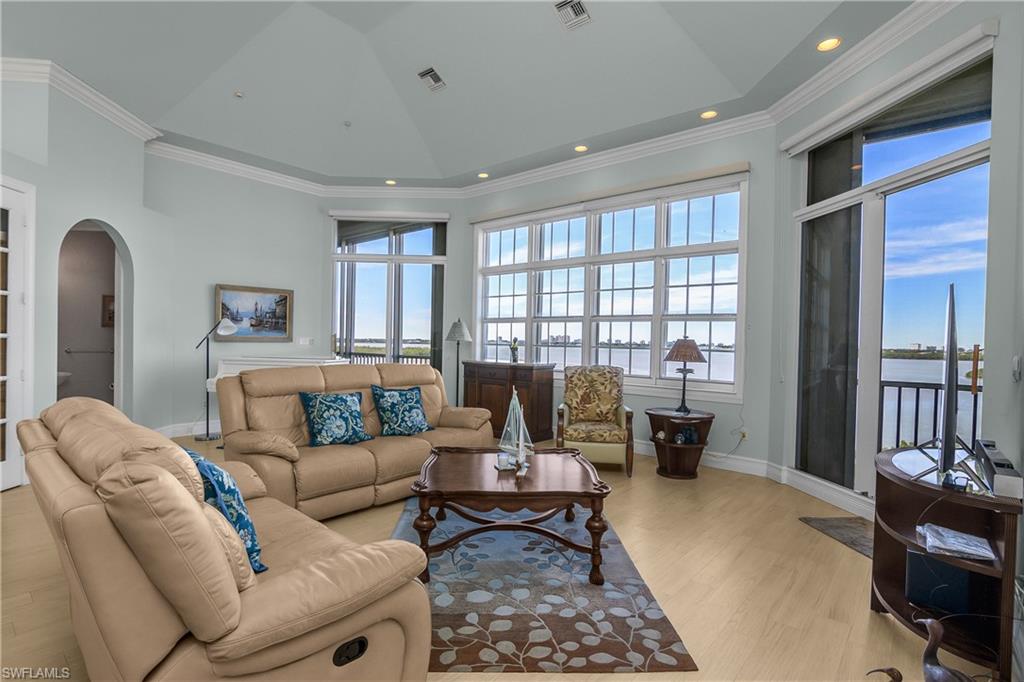 Enjoy Penthouse living at its finest from this rarely available gem overlooking Barfield Bay and all its splendor where nature and marine life abound. The ever-changing sunsets from this direct westerly facing property will astound you. Interior has 2,310 sq. ft. under A/C coupled with 2 additional screened in lanais for a total of 2,920 sq. ft. of Paradise! Master suite features huge his & her walk-in closets, granite countertops, dual sinks and crown molding. Guest ensuite also has granite, dual sinks and walk-in closet. The 3rd bedroom is currently set up as an office/den with custom desk, shelving and Murphy Bed. The island kitchen (with KitchenAid cooktop) has some recent upgrades including quartz counter tops. Electric storm shutters, sunshades and Plantation shutters galore. Plank laminate floor in the great room, bedrooms and hallways. Kitchen & bath have tile flooring. Step off the elevator into a fully enclosed bright & airy atrium leading to your front door. To keep you dry you'll love the 2 garage parking spaces with storage closets - there is ample guest parking on property for your entertaining pleasure. The gated community of Vintage Bay is one of the island's best kept secrets - serenity at its finest. Relax by the clubhouse screened in pool or traverse the adjacent mangrove boardwalk which leads to the covered gazebo on the water - perfect for the fishing enthusiast! If you're a 'Sunday-Funday' fan, you'll love the proximity to the historic village of Goodland!!