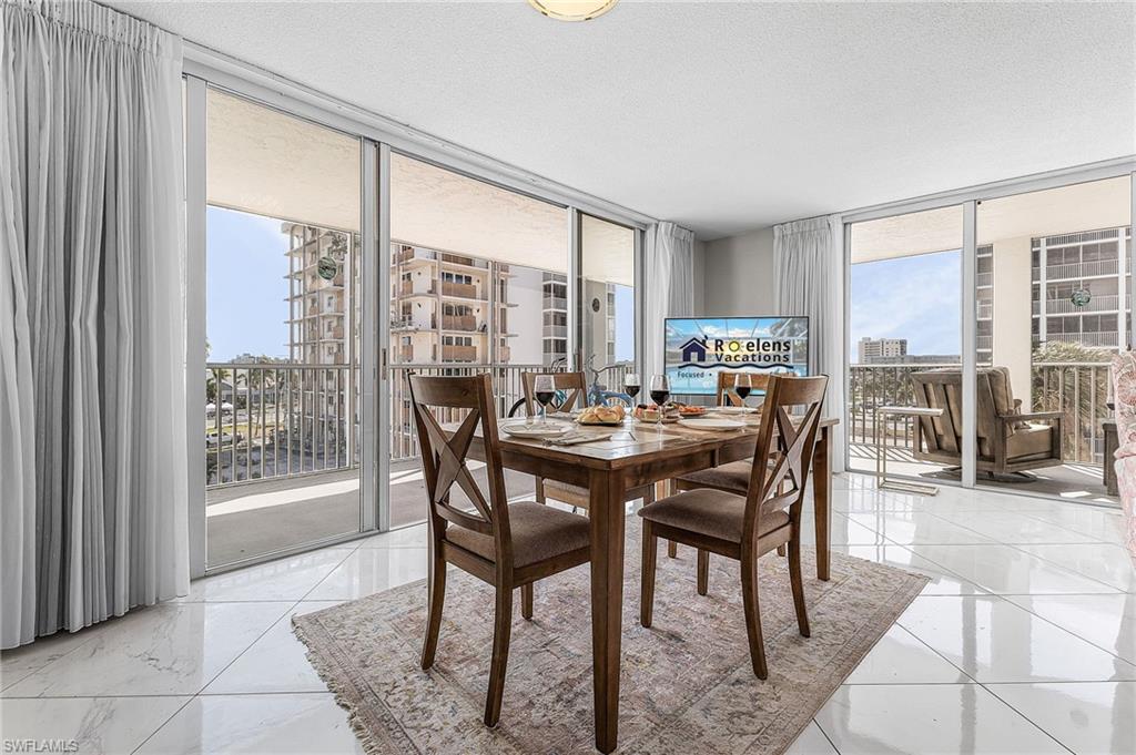 Live the coastal lifestyle in this beautifully updated corner/end-unit condo on the highly desirable south end of Fort Myers Beach. This 2-bedroom, 2-bath, 1,545 sq ft condo features an expansive L-shaped wrap around lanai, fully enclosed with impact-resistant glass sliders, adding additional bright, versatile living space ideal for year-round enjoyment. The light-filled open floor plan offers windows on three sides for abundant natural light and refreshing cross-breezes. The kitchen flows seamlessly into the living and dining areas, all overlooking the lanai for effortless indoor-outdoor living. Both bedrooms open directly to the oversized balcony, while updated baths add modern coastal style. Enjoy breathtaking Gulf views, sugar-white sands, and vibrant sunsets from this rare corner unit. Additional highlights include a deeded garage parking space, direct beach access, and a newly renovated resort-style pool. Just steps from Santini plaza, shopping, dining, entertainment, the Marina, and quick access to Lovers Key State Park, this condo is ideal as a full-time residence, seasonal escape, or income-producing rental in one of Fort Myers Beach’s most sought-after locations.