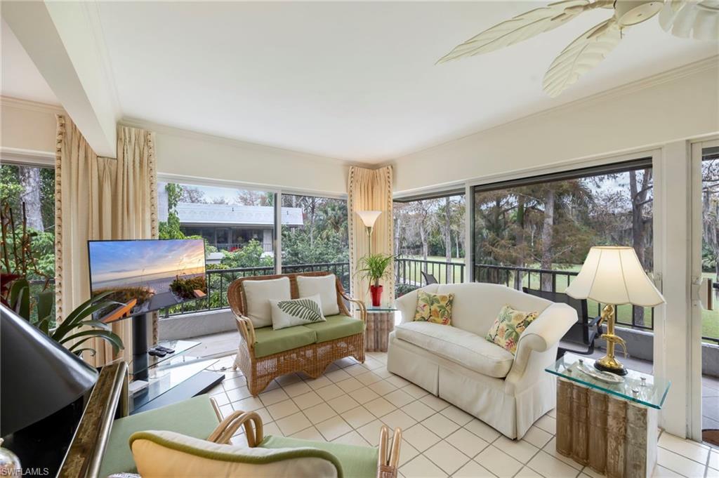 A Golf Enthusiast’s Dream! Enjoy unobstructed eastern golf course views from this pristine top-floor, 3-bedroom condominium, perfectly positioned on the 2nd fairway and featuring a wraparound lanai. Two expansive walls of windows flood the home with natural light, providing a peaceful area to relax and take in the serene surroundings. Located in an elevator building, this residence features a bright and cheerful kitchen with white raised-panel cabinetry and a built-in desk. Enjoy the lovely Florida décor with nice, finished details, perfect for entertaining. The Wilderness lifestyle begins immediately, with membership required at closing. The property includes assigned covered parking, conveniently located next to the golf cart garage, along with a golf cart. Nestled within a gated 200-acre forest, Wilderness Country Club is renowned for its lush landscaping and mature trees lining the roadways. Residents enjoy unlimited access to the 18-hole Arthur Hills–designed golf course, along with five swimming pools, four tennis courts, bocce, croquet, and a dog park. Just minutes from the shopping, dining, and cultural attractions of 5th Avenue South and Old Naples, this exceptional condominium offers the perfect blend of luxury, leisure, and natural beauty. Purchase of a Wilderness Country Club membership is required and readily available.