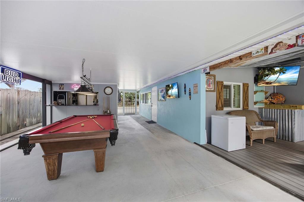 This charming and compact 4-bedroom, 2-bath home in the heart of downtown Bonita Springs blends immediate livability with rare future potential. Situated on a corner lot spanning a lot and a half, the property benefits from T4 Transect zoning, allowing for up to six units—a compelling opportunity for investors, developers, or buyers thinking long-term. The home itself is move-in ready and thoughtfully updated, featuring new privacy landscaping, a 2016 roof, 2025 HVAC, impact-resistant doors and windows, classic plantation shutters, and fresh paint inside. One of the standout features is the massive screened porch designed for year-round enjoyment, complete with a man shed, hot tub, and pool table—an ideal space for entertaining or unwinding in total privacy. The fenced-in backyard with additional storage shed and 14 foot rolling gate offers incredible flexibility, with plenty of room for a custom pool, or use it for RV or boat storage—a rare find downtown. Prime location, just a short walk to the popular restaurants, nightlife, and cultural events. Desirable X Flood Zone. No rental restrictions or limitations on short-term rentals, making this an ideal property for AirBnB, VRBO, or longer-term renting. Beautifully maintained and offered furnished, this property is ready for an investor or end user.