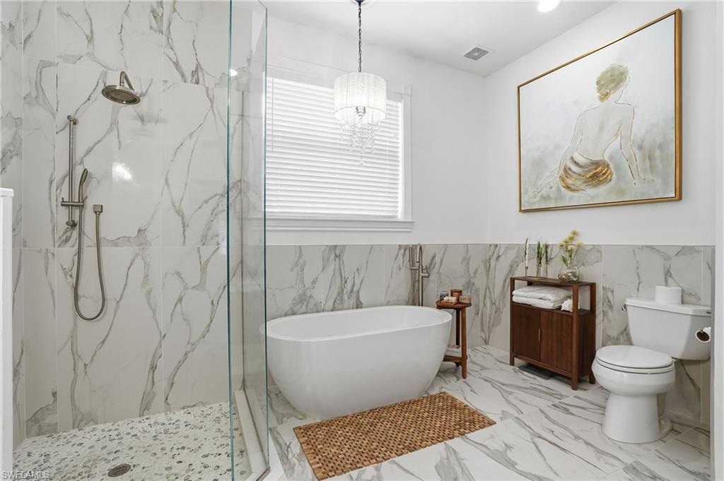 Rarely available and beautifully updated 3 bedroom, 3 full bath split floor plan home on coveted Royal Palm Drive. Soaring ceilings (16' ft) with gorgeous Legno Bastone French Oak flooring throughout the main living area. Updated kitchen with quartzite countertops, stainless appliances and wet bar (approx. 8 yrs). Outstanding Primary bath includes quartz countertops, large walk-in shower, and separate soaking tub (approx. 3yrs.) Wall of sliders off living room provide generous sunlight and panoramic view of the backyard oasis with pool & spa, covered patio w/electric storm shutters and convenient outdoor shower. Centrally located just minutes from the shops & restaurants of 5th Avenue as well as Naples finest beaches. Homeowner's warranted included.