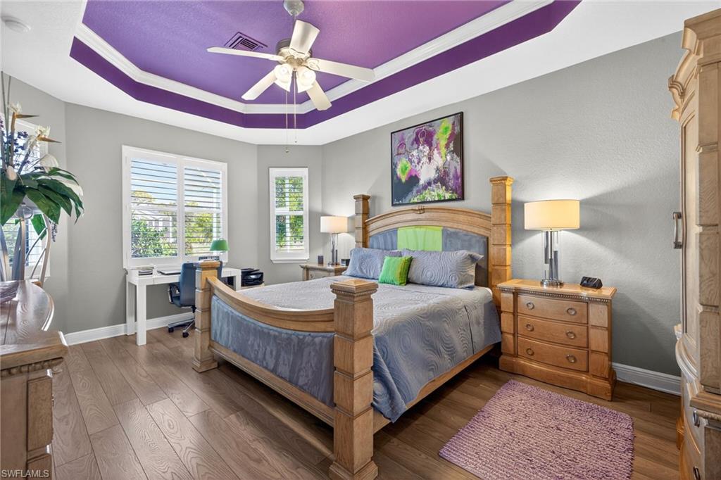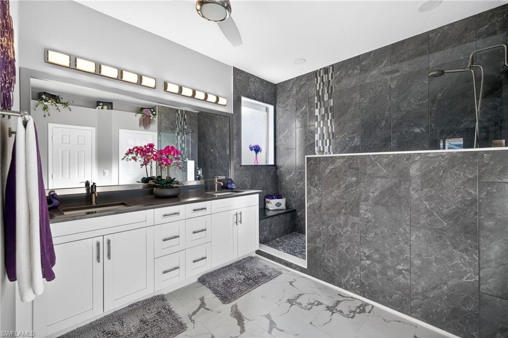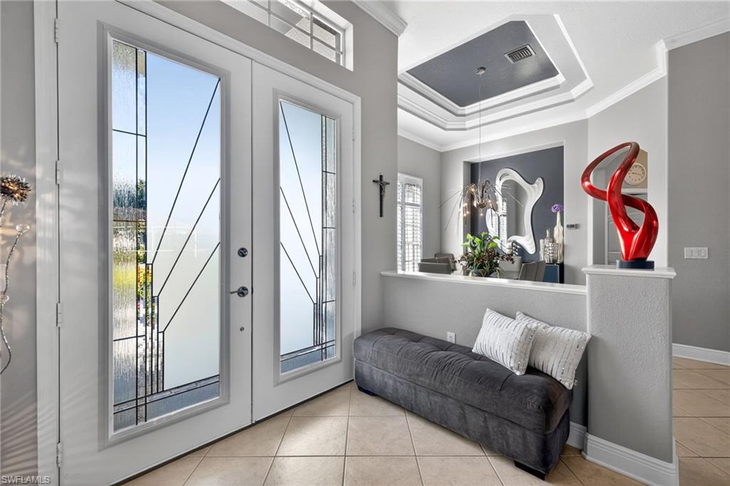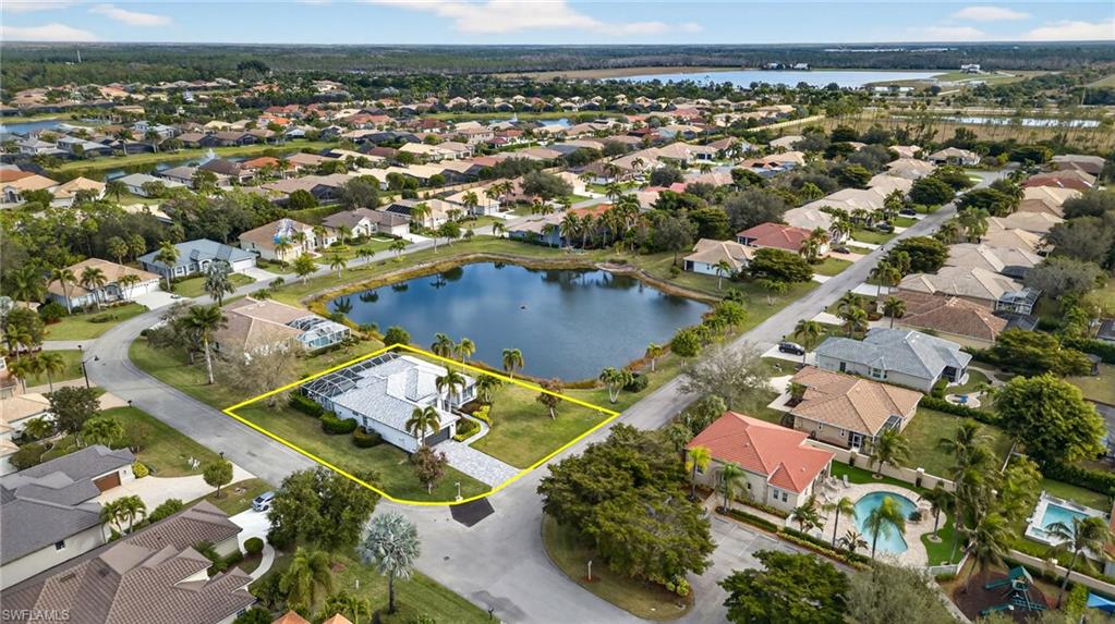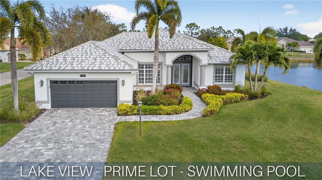 SENATIONAL SIR MICHAELS DRIVE!! PRICED TO SELL!! LAKE VIEW, NO NEIGHBORING HOMES ON EITHER SIDE AND COMPLETELY REMODELED WITH NEW ROOF (2020) AND NEWLY RENOVATED SWIMMING POOL (2025)!! Features of this beautiful, well cared for home include white kitchen with contrasting quartz countertops, 42" cabinets and stainless steel appliances; large master suite with bay window and 2 closets (1 walk-in, 1 standard), gorgeous renovated en-suite master bathroom with newer dual sink vanity and huge walk-in-shower featuring floor to ceiling wall tile; 2 spacious guest bedrooms split far from the master bedroom for privacy, renovated guest bath with walk-in-shower featuring floor to ceiling wall tile, large and separate den/office, all tile and luxury vinyl floors throughout (no carpet), multiple tray ceilings, crown molding throughout, plantation shutters, custom glass front door, family room feature wall, upgraded fans and light fixtures and so much more!! Outdoors, enjoy a gorgeous and recently renovated swimming pool with new finish and water edge tile, newer brick paver pool/tanning deck, large, covered lanai with retractable electric hurricane shutters, newer wide brick paver driveway, extra wide 2-car garage, beautiful landscaping, custom landscape lighting, wonderful views of the lake with lit up fountain and so much more!! Home is located in the desirable, low HOA fee, intimate, gated community of Chadwyck Square with 55 homes in total. Located just a short walk across the street, the amenities of Chadwick Square include a gated entry, community pool, exercise room, playground, clubhouse with kitchen, pickleball court and 1/2-mile loop around the neighborhood, perfect for walking, socializing and tracking those steps/miles!! Fees incude lawn maintenance, gate, professional management, irrigation water and access to all ameneities! Also, I5 Fiber Optic Internet lines are being installed in the community!! This home is ideally located close to the area’s best shopping, dining, entertainment, popular Downtown Bonita and just a short drive to the beach!! Call for your private showing and start enjoying right away!!