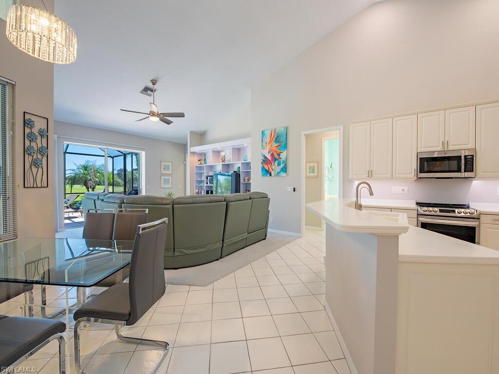 Experience casual elegance in this nearly 3,000 sq ft home with expansive views of the golf course in Imperial Golf Estates. The open layout with soaring ceilings includes formal living and dining rooms, a spacious family room, and an eat-in kitchen with stainless steel appliances, walk-in pantry and an island. The large laundry room features a laundry tub and nu-tone ironing cupboard. The master suite features two walk-in closets, jetted tub and pool and golf course views. There are three additional bedrooms, one currently used as a study, and another 2.5 baths in this spacious home. Outdoors, enjoy the oversized lanai with travertine tile, covered entertaining space, sunny area for lounging, and a pool with new heater. Imperial is a gated country club community with an active social calendar and championship golf.