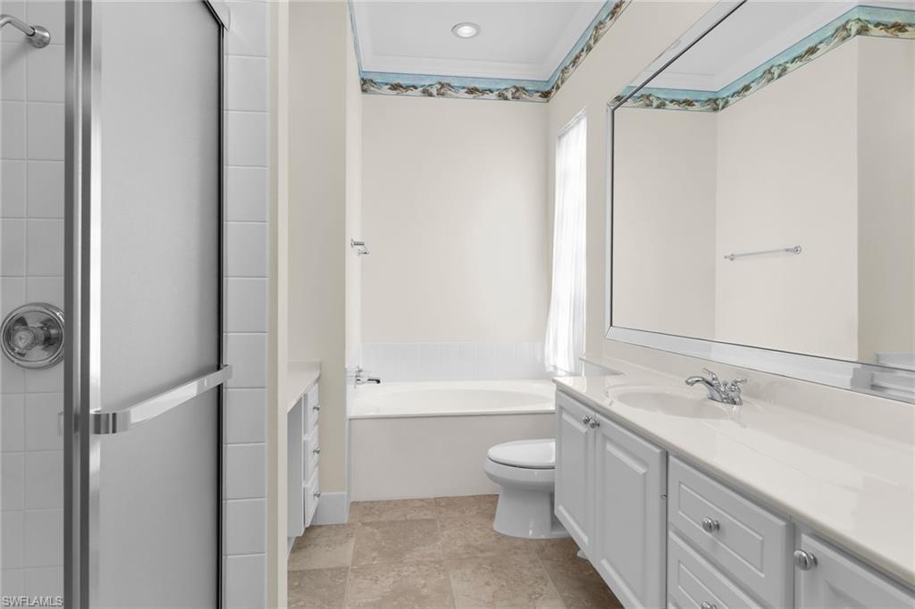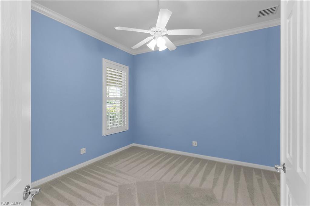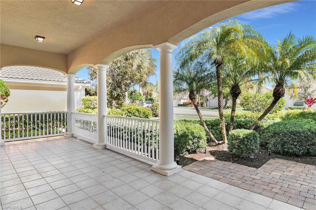 Come see this rarely available Carlyle model in the popular Verona Walk community. This original DiVosta-built home has poured concrete walls, a built-in vacuum cleaning system, and a tiled front porch that leads to an airy foyer. Enjoy sophisticated Florida living in your formal extended living and dining rooms plus a fifth bedroom. NEW kitchen appliances, including refrigerator & microwave. Recent updates include HVAC (2023), hot water heater (2023), pool pump & heater (2024). Also features garage door opener w/keypad, generator hook-up, battery backup, plantation shutters, uplit landscaping, and bonus Robb & Stucky wall unit. Spend your time outside enjoying the heated pool with a water view and complete privacy due to its location on a private cul-de-sac. Verona Walk offers 24-hour security with guarded gate, large resort style community pool, lap pool, 6 pickleball courts, 8 tennis courts, bocce ball, basketball courts, gym, kids’ playground, and walking paths with bridges. Town Center includes the newly-remodeled Verona Grill Restaurant, the Pink Frog ice cream shop, Salon at Verona Walk, travel agency, gas station, post office, library, computer center, ballrooms for events, card rooms, and activity director. Reasonable HOA dues that include cable TV with DVR, internet, ADT and lawn care. A short drive to Downtown Naples & Marco Island for fine dining, beaches, and boating and to Physicians' Regional Medical Center.