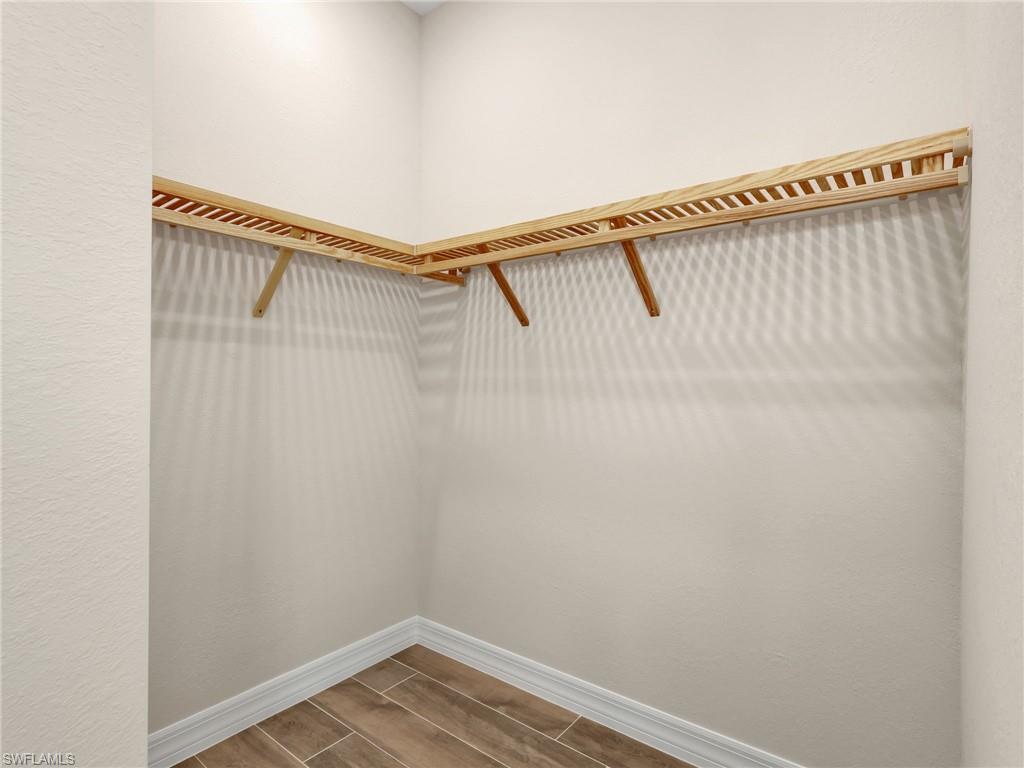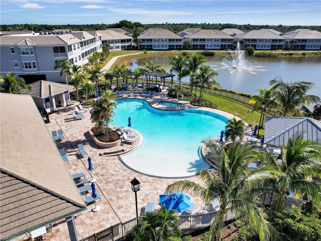 Pristine condition 3 bedroom, 2 bath classic coach home with 1 car garage. Built in 2023 and gently used by 1 tenant. 1504 sq ft. second floor unit. Beautiful wood grain tile floor isn't even available in Antilles. Seller chose it herself. Quartz countertops look like a costly granite. Peekaboo water views from primary bedroom, living room and lanai are unique to this classic coach unit Active Antilles is just 4.4 miles from Marco Island, just past Fiddler's Creek. It's 2.4 miles from Tamiami Trail and Collier Blvd junction. The best of both worlds. Antilles has resort style amenities which include a beautifully appointed clubhouse for year-round events, including an upcoming pig roast. Music by the pool with 4 outdoor Sonos speakers. Hot tub, fire pit, & a grilling station with fully functional sink and 2 refrigerators. Indoors find a fitness room, conference room and a kitchen area. Rounded out by 4 Pickleball courts, 2 bocce courts, a putting green and a walking trail around our larger lake. Join one of our 2 Pickleball leagues, experienced and beginners welcome. Peekaboo water view from LR, Primary bedroom and lanai. Antilles welcomes dogs too.