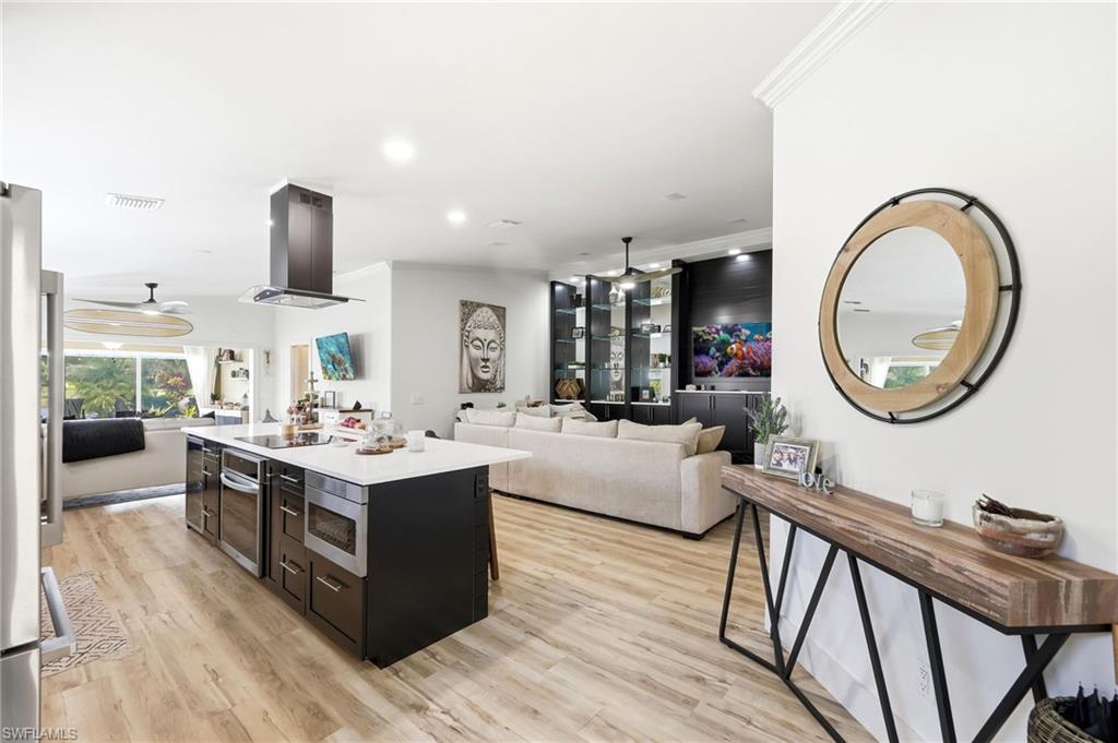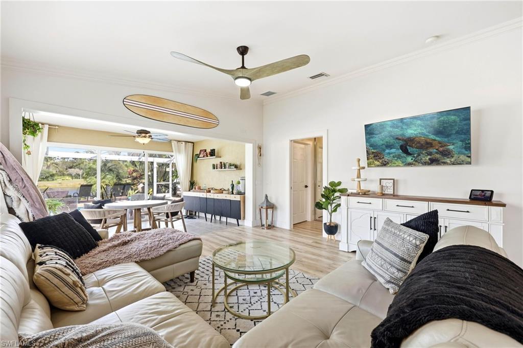 CUSTOM " BUILT SOLID " CAPRI WITH A PERFECT VIEW and location ! THIS TROPICAL OASIS HAS IT ALL . Remodeled extended open floorplan; Boast's a custom open kitchen and wall unit , ROOF 5 YEARS OLD, New AC -6 months old. Entire home has floating Vinyl flooring , upgraded appliances in kitchen, Extended driveway pavers and around the entire home plus an extended Sun Deck , Pool has a Picture frame view, All windows have accordion shutters , electric roll downs shutters on back of home, surround speakers, new front entry door. Plus plenty of other extra's ( Too much to list ) DONT'T FORGET THE STANDARD FEATURES THAT CAME WITH A REAL DIVOSTA HOME; Poured concrete walls, Smooth coat walls inside through-out the home, finished closets systems, 6 ft privacy wall Between your neighbor, central vac, insulated garage door. Verona Walk offers 24 hr. guarded gated entry, lighted tennis, bocce ball, basketball and pickle ball courts, resort-size community Lagoon pool, lap pool, tot lot, over 20 miles trails, 24/7 gym, post office, café/restaurant, ice cream Shoppe, hair salon, car wash, gas station, library, computer center, ballroom, card rooms, and a full-time activities director. Convenient to both Naples and Marco Island beaches, shops and fine dining, regional hospital and Edison college nearby. The low HOA dues also include lawn care & irrigation, basic cable TV