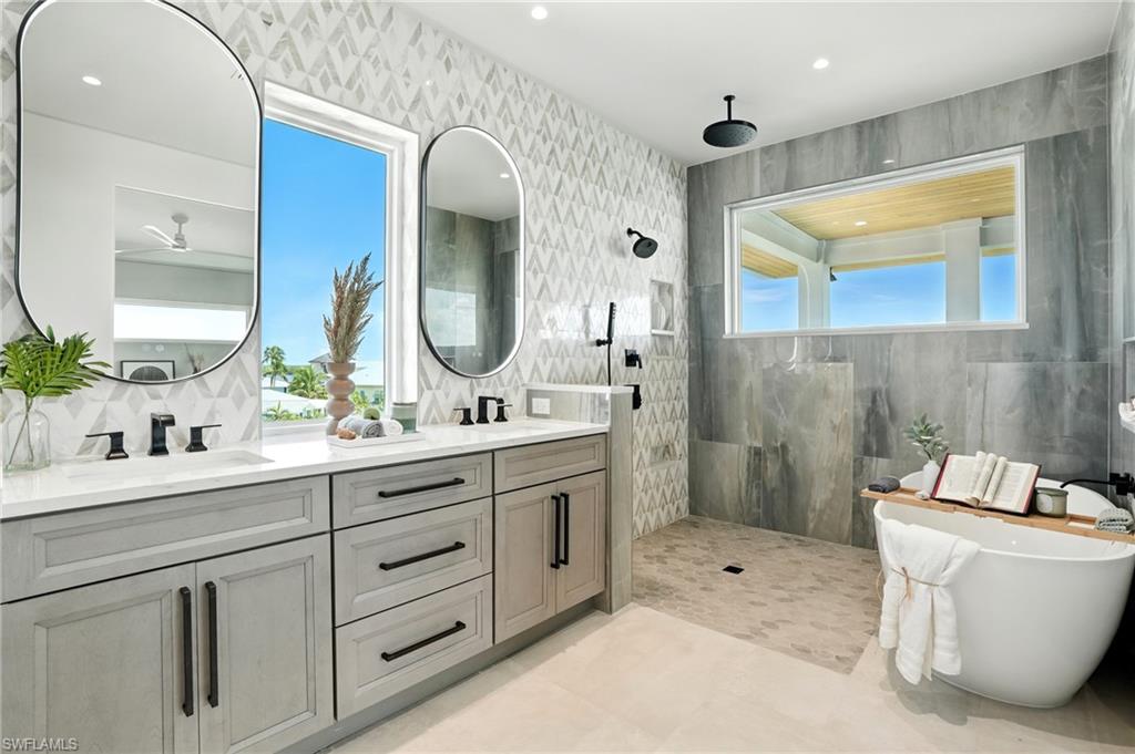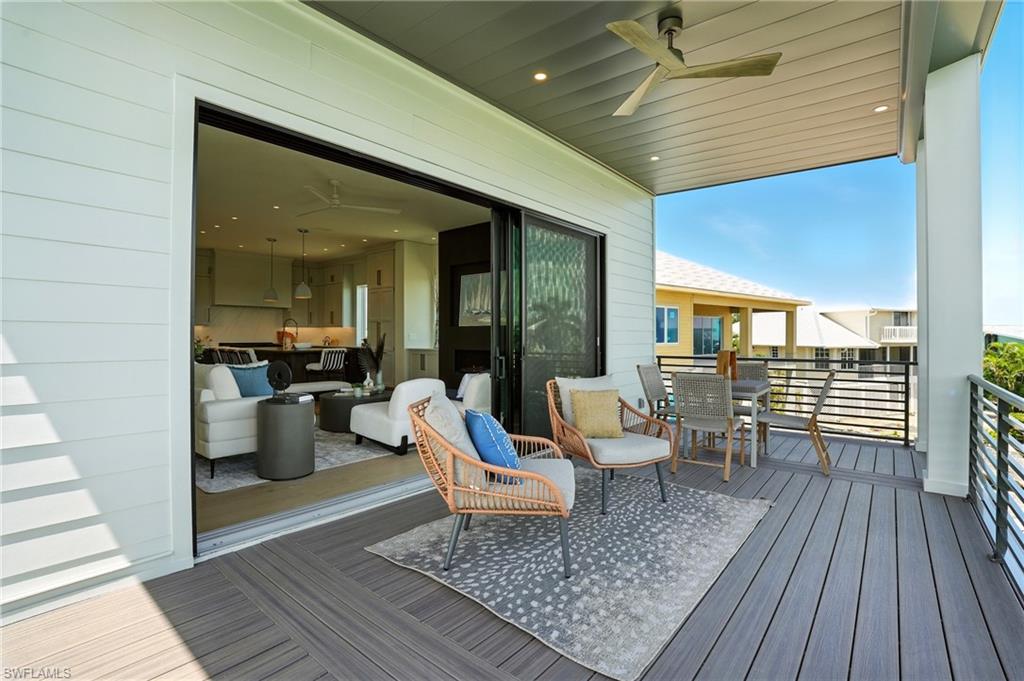 One of the only CUSTOM-BUILT SPEC HOMES LEFT on Island. BRAND NEW, 2025 ELEVATED CONSTRUCTION, PANORAMIC BAY VIEWS!! A rare opportunity awaits with this brand-new custom-built luxury coastal retreat on Fort Myers Beach. Two stories over garage, an ELEVATOR delivers you to 2,936 square feet under air, this waterfront residence blends elevated design, storm-smart construction, and timeless coastal elegance, all set in one of the island’s most coveted locations. Positioned along a winding canal framed by natural mangroves, the property boasts a brand-new 60-foot Honc Marine seawall with a 2-foot concrete cap, a 10,000 lb. boat lift with canvas canopy cover, and quick, direct access to the Gulf of Mexico—making it a true boater’s paradise. From sunrise to sunset, enjoy sweeping views of the bay and Gulf from multiple vantage points, while direct beach access ensures the ultimate coastal lifestyle just steps from your door. Built in 2025 with meticulous craftsmanship, the home features elevated construction with the garage raised 5.5 feet and second-floor living space soaring to 17.8 feet for enhanced storm resilience. Architectural details include cypress tongue-and-groove soffits, PGT black aluminum sliders, hurricane-rated windows and doors, and a deck drainage system for durability and low maintenance. Inside, hand-scraped engineered white oak flooring flows throughout, complemented by hardwood custom cabinetry, quartz countertops, and solid-core interior doors with flush-mount hinges. Designer-grade finishes, curated fixtures, and reveal drywall detailing elevate every space, while a private elevator services all levels for convenience. The open-concept floor plan is flooded with natural light and extends seamlessly to rear bay view decks, where panoramic water views create the perfect backdrop for entertaining. Create lasting family memories around the sleek waterfall island of your chef's kitchen. A natural flame fireplace fueled by a 500-gallon propane tank adds warmth and ambiance, while the elevated three-car garage provides abundant storage and workshop space. Smart-home readiness includes pre-wiring and piping for a whole-home generator, dual 3-ton HVAC units for zoned comfort, and a Ring camera system for peace of mind. Outside, tropical landscaping with a six-zone irrigation system enhances the property’s coastal beauty. Pool renderings are for informational purposes only and not included. Introductions to pool contractors can be arranged. Located on prestigious Seminole Way, this home offers unmatched proximity to the Gulf, the beach, and the vibrant island lifestyle of Fort Myers Beach. More than just a residence, 306 Seminole Way is a statement of luxury coastal living—where resilience, design, and waterfront elegance meet.
