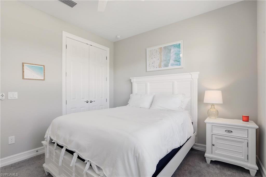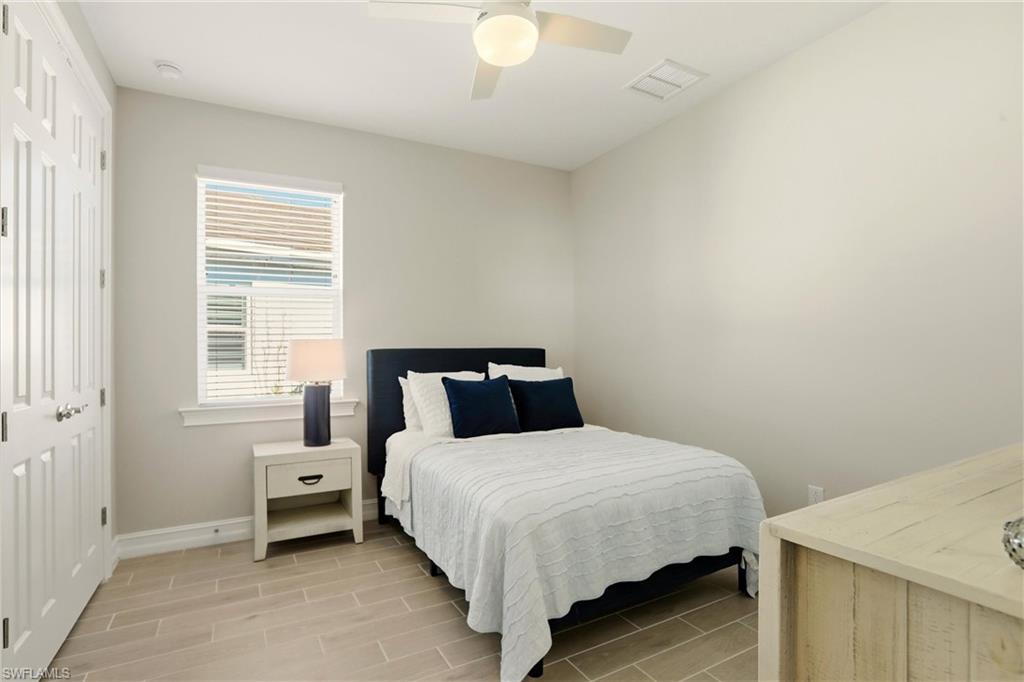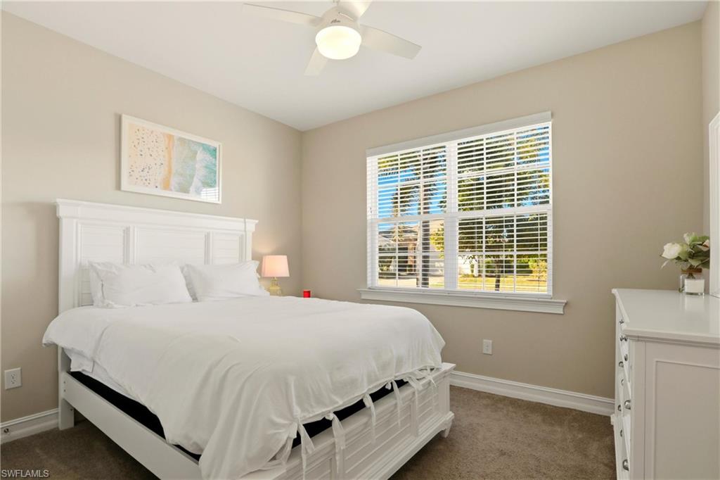 Created for effortless Southwest Florida living, this Delray floor plan offers the perfect blend of comfort, convenience, and resort-style relaxation in the highly desirable Seasons at Bonita. Rarely used and impeccably maintained, the home shows like new, making it an ideal choice for a seasonal retreat or lock-and-leave lifestyle. The open, sun-filled layout is designed for easy living and entertaining, with a modern kitchen and generous island flowing seamlessly into the living and dining areas. Offered TURNKEY FURNISHED with a couple of exclusions, the home is truly move-in ready—complete with a 1-year-new kitchen refrigerator, an additional refrigerator in the garage, smart-home features, and an electric shade on the living-room slider that provides instant comfort and privacy at the touch of a button. Outdoors, a private oasis awaits. The heated pool and spa overlook tranquil lake views, creating the perfect setting for morning coffee, sunset swims, or relaxed evenings under the stars. Located in a non-flood zone with low HOA dues, Seasons at Bonita delivers resort-style amenities including a clubhouse, fitness center, tennis, pickleball, bocce, and a resort pool. Just minutes from white-sand beaches, shopping, dining, and conveniently close to Naples and Estero, this home captures the ease of a vacation lifestyle—without compromise.