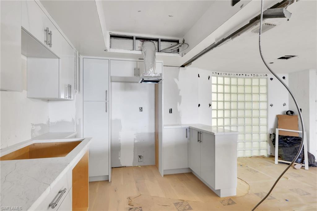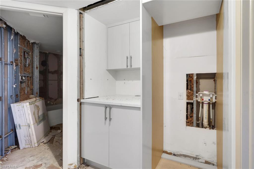 Imagine waking up to shimmering views of Venetian Bay and direct Gulf of Mexico beach access from this 7th-floor residence in the heart of Park Shore. The heavy lifting is already done—demolition is complete, making this the perfect opportunity to bring your vision to life and put your own finishing touches on a coastal retreat. Can you imagine how great this luxury condo will look once you have chosen your vanities, fixtures and color palette? In fact, some of the materials are already on-site. This is a rare opportunity make a home your own instead of adopting a previous owner’s taste and choices. There is already brand-new wood flooring in a timeless, designer-friendly tone that flows beautifully throughout the living space, while new kitchen cabinets and counters provide a fresh, modern foundation. This well-appointed building offers outstanding amenities including direct Gulf beach access, a resort-style pool and spa, sauna, card room, three guest suites, and a fitness center conveniently located just downstairs, along with garage parking and 24-hour security for peace of mind. Perfectly situated in Park Shore, you’ll love being just down the street from Venetian Village’s shops and restaurants, with quick access to 5th Avenue South and 3rd Street South. The surrounding area is ideal for cycling or jogging, offering an active lifestyle with a true coastal feel. Living in Park Shore is special because it delivers a true Naples coastal lifestyle with an ideal mix of luxury, convenience, and everyday ease, perfectly positioned just north of downtown with world-class dining, shopping, and culture always within minutes. Beach days, sunsets, and water activities become part of your daily life, while wide, scenic streets create a walkable, vibrant community atmosphere. A rare opportunity to customize a beautifully positioned residence with breathtaking views and unbeatable beach access—this is coastal living at its finest.
