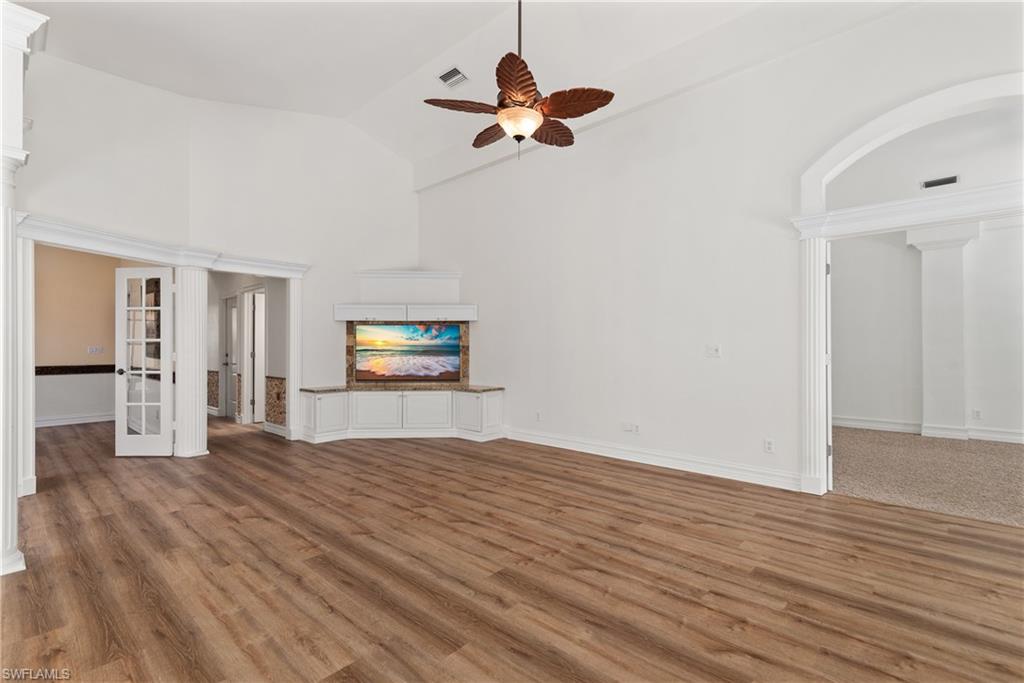Tucked away on a quiet cul-de-sac in the heart of Bonita Bay, this beautifully crafted residence offers a rare blend of timeless elegance, privacy, and resort-style living. From the moment you step inside, soaring ceilings, refined crown molding, and upgraded trim showcase a level of craftsmanship seldom found today. Luxury vinyl flooring adds modern warmth while complementing the home’s classic architectural details. The open, light-filled floor plan invites effortless living and entertaining. A versatile den with custom solid-wood built-ins—crafted by a skilled artisan—creates the perfect space for a home office, library, or guest retreat. The expansive kitchen is the heart of the home, featuring crisp white cabinetry, natural granite countertops, stainless steel appliances with a wall oven and microwave, a center island, breakfast bar, and sunny breakfast nook—all seamlessly open to the great room and formal dining area. The kitchen, and owner's suite overlook the private lanai, creating a strong connection to the outdoors. The spacious owner’s suite is a true sanctuary, complete with a sitting area perfect for reading and French doors that open directly to the pool and spa. Step outside to your own tranquil oasis, where southeastern exposure delivers breathtaking sunrises over the sparkling pool and spa—an ideal atmosphere for both relaxation and entertaining. Recent peace-of-mind upgrades include a new roof and full replumbing in 2024. Life in Bonita Bay means access to one of Southwest Florida’s most prestigious private clubs. Bonita Bay Club offers five championship golf courses designed by Arthur Hills and Tom Fazio, an exceptional Sports Center with tennis, pickleball, croquet, and resort-style pools, a state-of-the-art fitness and lifestyle center, and a luxurious spa and salon for total rejuvenation. The community also features a private beach club, marina, miles of walking and biking paths, kayaking, canoeing, dining venues, and beautifully maintained parks. Ideally located just minutes from world-class dining, shopping, beaches, nature preserves, downtown Bonita Springs, downtown Naples, and RSW International Airport, this home delivers the ultimate Florida lifestyle—where every day feels like a getaway. Membership info available upon request.