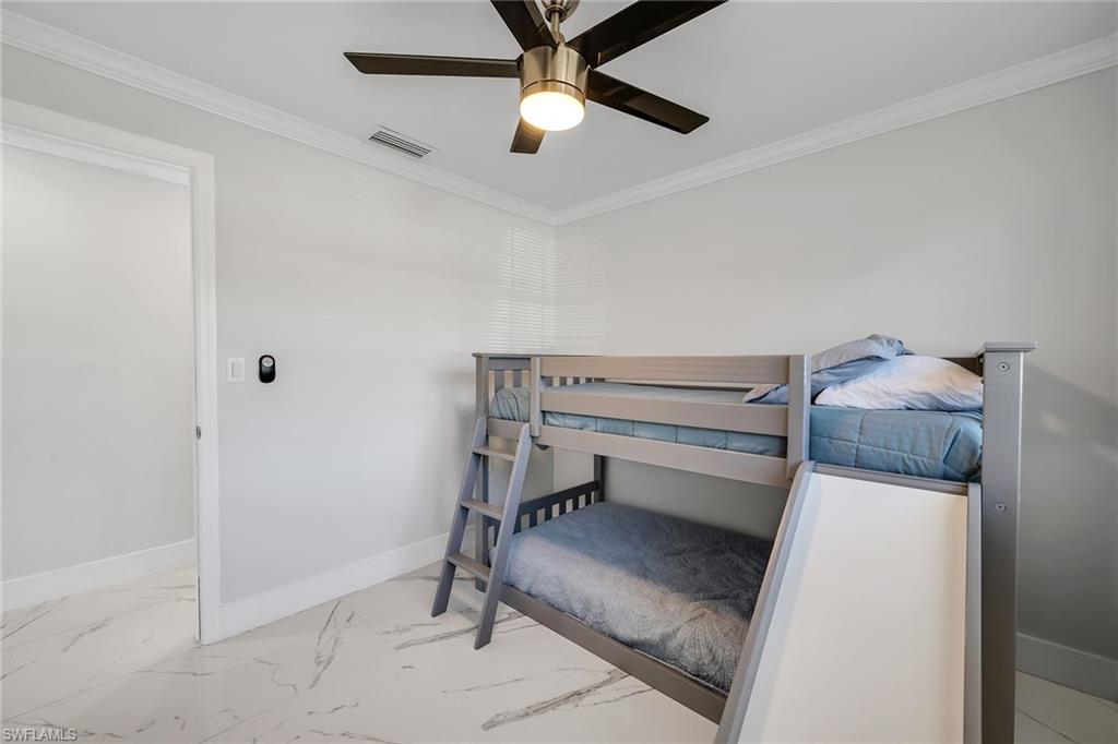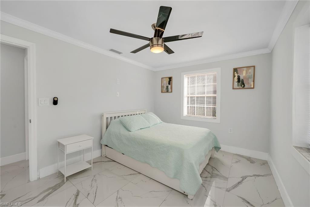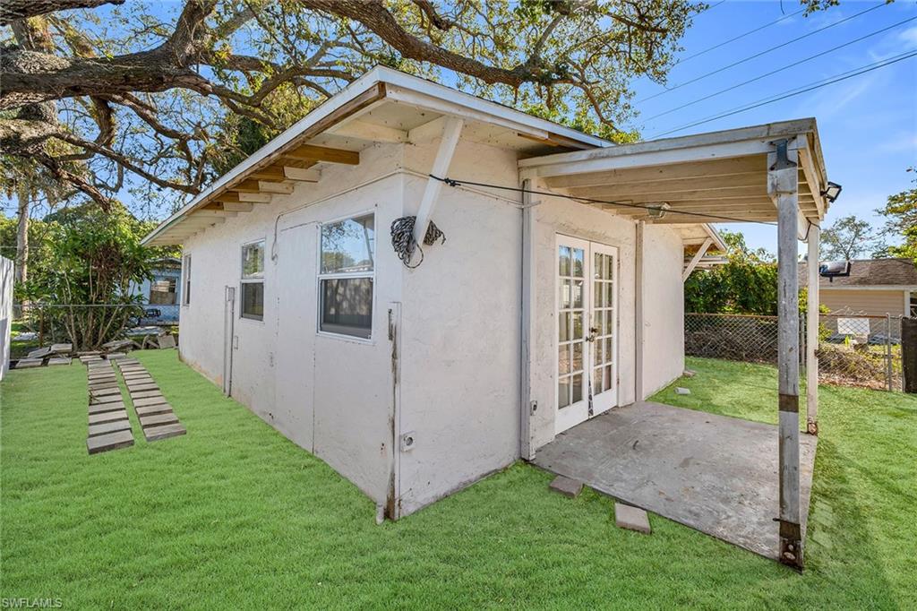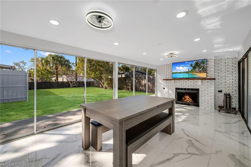 Located in Coconut Grove and bathed in desirable southern exposure, this beautifully furnished residence delivers a bright white interior, versatile living spaces, and a rare efficiency apartment all complemented by a private, fully fenced backyard ideal for relaxed Florida living. Thoughtfully designed to balance comfort and flexibility, the property includes covered carport parking in addition to guest parking, making it well suited for tenants or family and friends. A welcoming front patio sets the tone, while the interior unfolds into inviting living areas anchored by a fireplace that adds warmth and character. The main residence offers a well-planned three-bedroom, two-bath layout enhanced by crown molding, recessed lighting, ceiling fans, and tile flooring. The living room is designed for easy entertaining and comfortable day-to-day use, with thoughtful details throughout that elevate the overall experience. The kitchen is both stylish and functional, featuring crisp white shaker-style cabinetry, stainless steel appliances, a four-seater island, and clean finishes that complement the home’s bright aesthetic. The kitchen flows effortlessly into a sun-filled sunroom, where abundant natural light pours in through glass sliders that open directly to the backyard, creating a seamless indoor-outdoor connection and a perfect setting for everyday living or casual gatherings. The primary bedroom enjoys tranquil backyard views and serves as a private retreat, complete with an ensuite bath showcasing a walk-in shower with a frameless glass enclosure and floor-to-ceiling tile. Two additional guest bedrooms provide comfortable accommodations, supported by a nearby bathroom finished to the same standard with a frameless glass walk-in shower and floor-to-ceiling tile. A well-appointed laundry room includes a full-size washer and dryer, upper cabinetry for storage, and a utility sink for added convenience. Additionally, a camera security system offers peace of mind. The efficiency apartment adds exceptional value and versatility, ideal for visitors, extended family, or flexible use, all while maintaining privacy within the fenced backyard setting. This is a unique opportunity to enjoy a furnished, move-in-ready home with multiple living options in a sought-after Naples location.