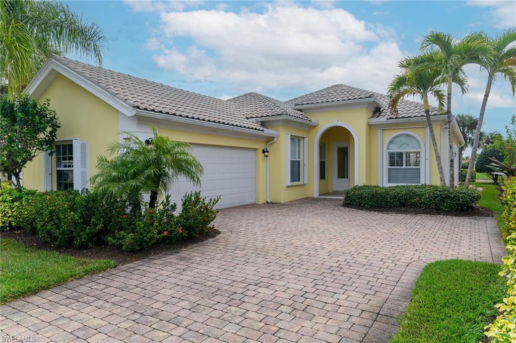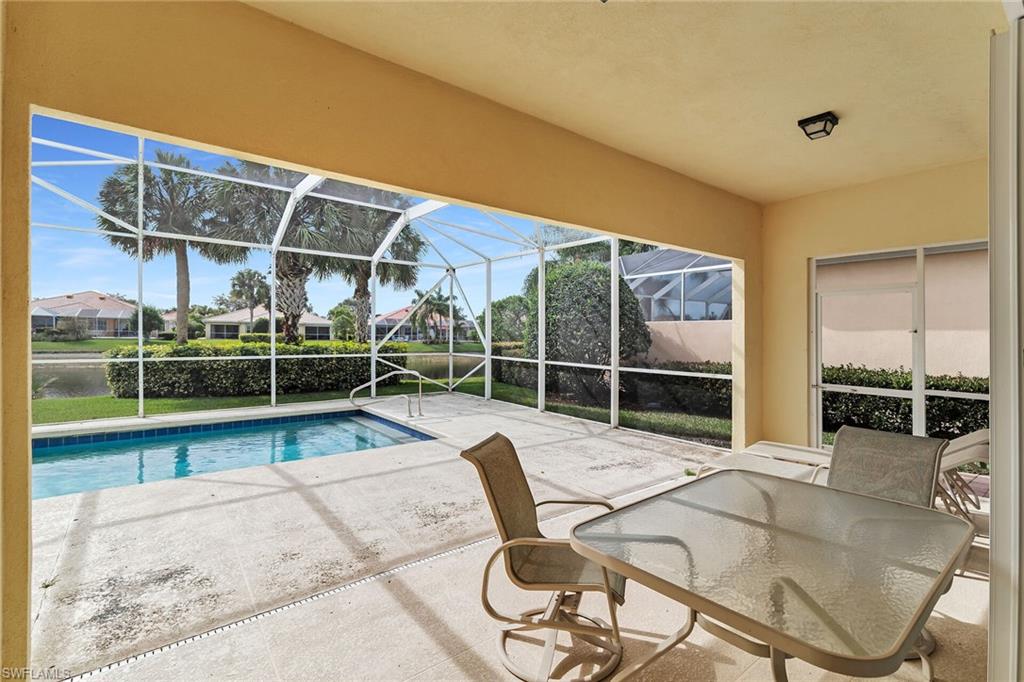 Welcome to your beautiful 3-bedroom plus a den, 2-bath single-family dream home in the sought-after gated resort community of Verona Walk. Look past the private heated pool onto your caged lanai to relaxing water views. The owner’s suite looks out on the lanai with the same tranquil lake views and features a huge walk-in closet plus several other closets for incredible storage space! The master bath shares a single, large shower but has TWO commodes for maximum comfort and privacy. The two guest bedrooms are in the front of the house, providing privacy for the master suite, and share a large bath. The flexible den/home office can double as an office or an additional bedroom for guests. Numerous detention ponds on the property absorb storm runoff, so no flood insurance is required. Verona Walk offers 24-hour security with guarded gate, large resort style community pool, lap pool, 6 pickleball courts, 8 tennis courts, bocce ball, basketball courts, gym, kids’ playground, and walking paths with bridges. Town Center includes the newly-remodeled Verona Grill Restaurant, the Pink Frog ice cream shop, Salon at Verona Walk, travel agency, gas station, post office, library, computer center, ballrooms for the numerous community events, card rooms, and activity director. Reasonable HOA dues that include cable TV with DVR, internet, ADT and lawn care. A short drive to Downtown Naples & Marco Island for fine dining, beaches, and boating and to Physicians' Regional Medical Center.