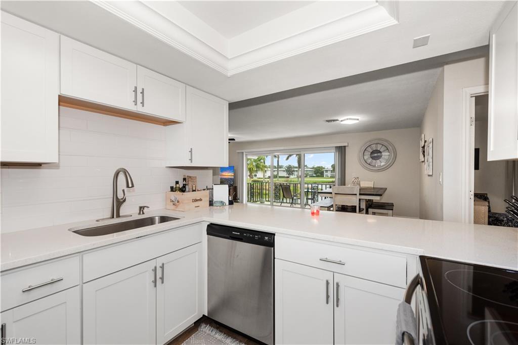 This is the one you have been waiting for! Boasting million dollar golf and water views, this beautifully renovated two-bedroom, two-bath condo offers all the updates that today’s buyer desires. The kitchen is equipped with white cabinets, sleek quartz countertops, and stainless steel appliances, creating a modern and functional space for cooking and entertaining. Each of the two spacious split bedrooms features a private, full bathroom, ensuring comfort and privacy. The primary bedroom stands out with a large walk-in closet that provides abundant storage, as well as sliders from the bedroom that open to the porch, allowing you to enjoy spectacular views of both the golf course and the lake. Enjoy peace of mind as the unit features impact doors and windows throughout. Located within The Glades Golf and Country Club, this property is one of Naples’ best-kept secrets. Just three miles from the renowned dining and shopping on 5th Ave and Naples's white sand beaches, the community offers excellent amenities for residents including 36 holes of bundled golf designed by Gordon Lewis, featuring a championship par 70 and an executive par 55 course, with options to walk or ride, a new pickleball facility with 15 courts, 6 new hard-tru tennis courts, 3 new bocce courts, shuffleboard, nine community pools, library, art room, 19th hole restaurant, clubhouse, and pro-shop. The Glades is a vibrant, social and welcoming community, just waiting for you to call it home!