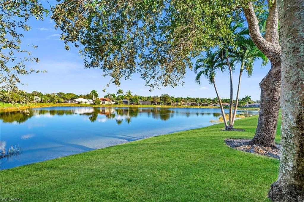 In the sought-after, gated community of Briarwood, this turnkey waterfront residence offers a serene lakefront setting paired with a thoughtfully designed floor plan and inviting outdoor living. The screened lanai and tranquil water views create an immediate sense of relaxation, while the home’s turnkey presentation allows for effortless enjoyment from day one. With four bedrooms, three baths and a two-car garage, this property is equally appealing as a full-time residence, seasonal retreat or income-producing investment, as the community allows weekly rentals and the home has established rental income. With a low annual HOA fee of $1,600, operating costs remain minimal while rental potential remains high. A double-door entry introduces a bright, welcoming interior finished with tile flooring and ceiling fans throughout. Natural light flows easily through the main living areas, enhancing the open feel and drawing attention to the picturesque lake beyond. The kitchen is designed for everyday living and entertaining, featuring white cabinetry, a pantry, transom windows for added light and a spacious four-seater island that anchors the space. The living room features a wood-burning fireplace and is framed by French glass doors, opening to views of the pool while providing seamless access to the screened lanai. The primary suite is a peaceful retreat with a tray ceiling and glass sliders leading directly to the lanai. Its en-suite bath is well-appointed with a double vanity, a walk-in shower with glass enclosure and a relaxing soaking tub. One guest bedroom enjoys beautiful lake views and French glass doors to the lanai, along with an attached bath offering a shower-tub combination and convenient lanai access. Two additional guest bedrooms provide flexibility for family, guests or a home office, supported by a nearby full bath with a shower-tub combination. Outdoor living takes center stage on the screened lanai overlooking the lake, highlighted by a saltwater pool designed for year-round enjoyment. The pool is solar-heated daily and also equipped with electric heating, offering flexibility and efficiency throughout the seasons. A covered outdoor seating area provides a setting for relaxing or entertaining. A well-equipped laundry room with a full-size washer and dryer, upper cabinetry and a utility sink adds everyday convenience. Residents of Briarwood enjoy amenities that were all recently redone, including a 24-hour staffed gatehouse, private park, tennis and pickleball courts, a soccer field, beach volleyball and basketball courts, two heated community pools, a community event center, and a scenic setting of lakes and preserve areas, all just minutes from Naples beaches, shopping and dining.