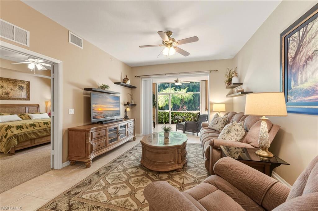 Located in Falling Waters, this Immaculate First-Floor Condo offers peaceful garden views with a water feature, and privacy! This beautifully updated 2-bedroom, 2-bathroom first-floor condo offers tiled flooring in the main living spaces with an oversized one car garage and is located in the highly sought-after community of Falling Waters offering a Tropical Resort Style Pool and the best of Florida living! Impeccably maintained and move-in ready, this Turnkey furnished unit boasts an array of luxurious finishes and upgrades throughout. As you step inside, you'll immediately notice the tiled flooring that flows seamlessly through the main living areas, creating a bright and airy ambiance. The kitchen has a new quartz countertop, pull out drawers in all cabinets and pantry, newer stainless-steel appliances, a breakfast bar, and a cozy nook area by the windows, allowing natural light to flood the space, making it the perfect spot for casual meals or enjoying your morning coffee. The owner's suite is spacious and offers a walk-in closet and opens directly onto the lanai, offering the ideal spot for morning relaxation with a view. The French Pocket Doors leading to the guest en-suite bedroom is generously sized and can easily accommodate a king-size bed, making it perfect for visitors. The windows have attractive Wood Plantation Shutters installed on the inside and Accordion Storm Shutters installed on the exterior of every window throughout, including the Lanai sliders. The spacious Lanai offers plenty of room to set both a dining and living and has a summer kitchen with spacious counter tops and additional cabinets for your convenience.The laundry room is large and well-equipped with additional cabinetry for storage keeping your home organized and clutter-free and a sink for your convenience. Enjoy the unmatched lifestyle that comes with living in Falling Waters—a gated community with 24-hour security. Enjoy the famous Resort-Style Saltwater Tropical Pool welcoming you daily to the paradise found in the Southwest Florida lifestyle with the perfect blend of relaxation and fun. Falling Waters also has a clubhouse, a variety of recreational activities, tennis courts, bocce ball, shuffleboard, putting greens, and BBQ areas. This unit is ideally located just minutes from shopping, healthcare facilities, beaches, public golf courses, restaurants, and downtown Naples. Stroll along 3rd and 5th Avenues to explore fine dining, boutiques, and the vibrant culture that Naples is known for. Whether you enjoy the white sandy beaches of the Gulf or the Naples Pier, everything you need is at your fingertips. If you’ve been waiting for the perfect Florida getaway, now is the time to call and schedule your showing!