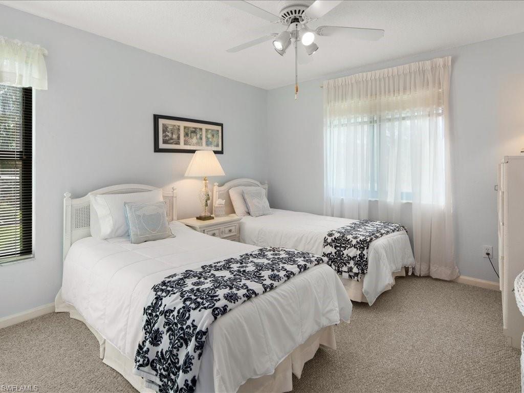 Bright and spacious End-Unit condo with golf course views! Welcome to this second-floor end-unit condo, perfectly positioned to capture beautiful eastern views of the Royal Wood golf course. Located in close proximity to many things Naples offers, this residence offers an abundance of natural light, enhanced by new hurricane impact windows for peace of mind and energy efficiency. Step inside and be greeted by a spacious, open floor plan designed for both comfort and style. The end-unit provides extra windows to flood the living spaces with sunlight, creating a warm and inviting atmosphere. The wide lanai provides the perfect spot to enjoy your morning coffee while taking in serene golf course vistas. This charming condo features 3 bedrooms, 2 bathrooms, and thoughtfully designed living spaces ideal for both relaxation and entertaining. The kitchen offers ample storage and counter space, while the open living and dining areas make hosting a breeze. Located just minutes from Naples’ world-class beaches, shopping, dining, and entertainment, this condo offers the ideal blend of convenience and tranquility.
