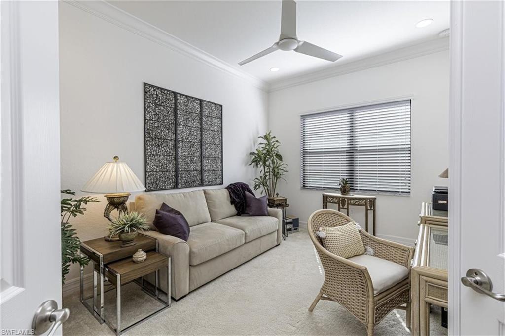This stunning attached-villa in the highly desirable Marbella isles gated community in north Naples, Florida features the popular Bristol floorplan from GL homes. This layout includes two bedrooms plus-den which serves as a flexible, extra bedroom office or additional living space. This is a single-story home with an open great room design that has a modern open concept, layout with a spacious greatroom perfect for entertaining an eaten kitchen with a breakfast bar and room for additional dinning gathering areas. Upgrades shine through with elegant hardwood floors, crown molding throughout marble countertops and all stainless steel appliances in the kitchen. There is an impressive oversize, screened in lanai with brick pavers that overlooks a beautiful lake ideal for enjoying Florida's serene sunrises, and outdoor living, a two car garage and a generous size laundry room ad practical convenience. Marbella Isles developed by GL Homes is a resort style gated community with a mix of villas and single family homes residence. Enjoy top-tier amenities like a large resort style, pool and spa children's water park with slide and splash areas, tennis and Pickleball courts, fitness center clubhouse with game rooms and indoor basketball all set amid lush landscaping and beautiful lakes.