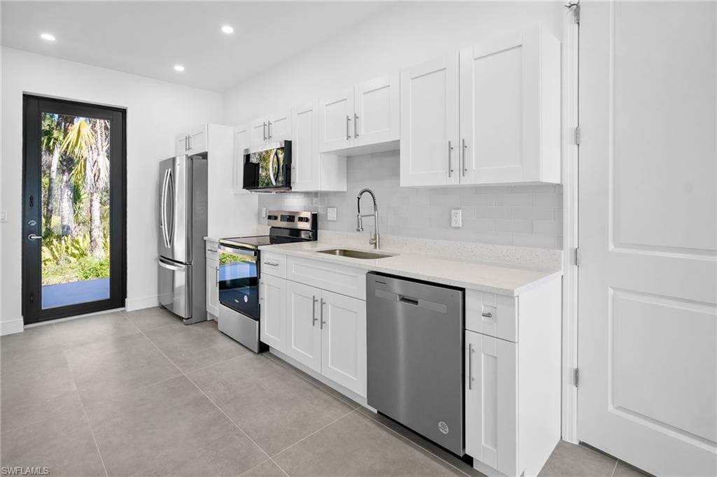 Rare Dual-Living New Construction on 1+ Acre | Two Complete Homes Under One Roof No HOA Discover one of Golden Gate Estates most versatile offerings a brand new 2024 CBS home featuring two fully independent living spaces, each with its own kitchen, bathrooms, laundry, and private entrance. Whether you're seeking multi generational living, rental income potential, or simply room to spread out, this thoughtfully designed property delivers flexibility that's nearly impossible to find in today's market. Side One offers two bedrooms, two modern bathrooms, a fully equipped kitchen with stainless appliances, and its own electrical panel for complete independence. Side Two mirrors this functionality with two additional bedrooms including an ensuite primary a second full kitchen, and dedicated laundry facilities. Together, these spaces create 1,569 square feet of contemporary living with tile flooring throughout, French doors connecting interior to exterior, and an open concept design flooded with natural light. Built to Florida's latest codes with solid concrete block construction and impact resistant windows and doors on every opening, this home qualifies for significant insurance discounts potentially saving $4,000+ annually compared to older construction. The peace of mind extends beyond storms: you're buying new systems, new roof, new everything, backed by builder warranties. The 1.14-acre lot provides genuine privacy surrounded by mature landscaping and natural Florida beauty. Add a pool, build a detached garage, keep horses, or simply enjoy the space no HOA means no restrictions, no monthly fees, and no approval needed for your plans. Golden Gate Estates offers the rare combination of country tranquility minutes from Naples' world-class dining, beaches, and shopping. Collier County's A rated school district, I-75 accessibility, and growing commercial corridors along Golden Gate Boulevard add convenience without sacrificing the peaceful lifestyle residents treasure. Income minded buyers take note: With Golden Gate Estates rental rates averaging $2,600+/month, the dual living configuration supports house hacking strategies live in one unit, rent the other or traditional investment approaches with two rental incomes from a single tax parcel. This is new construction priced to sell, offering modern living, maximum flexibility, and long term value in one of Naples most desirable non gated communities. Schedule your private showing today.