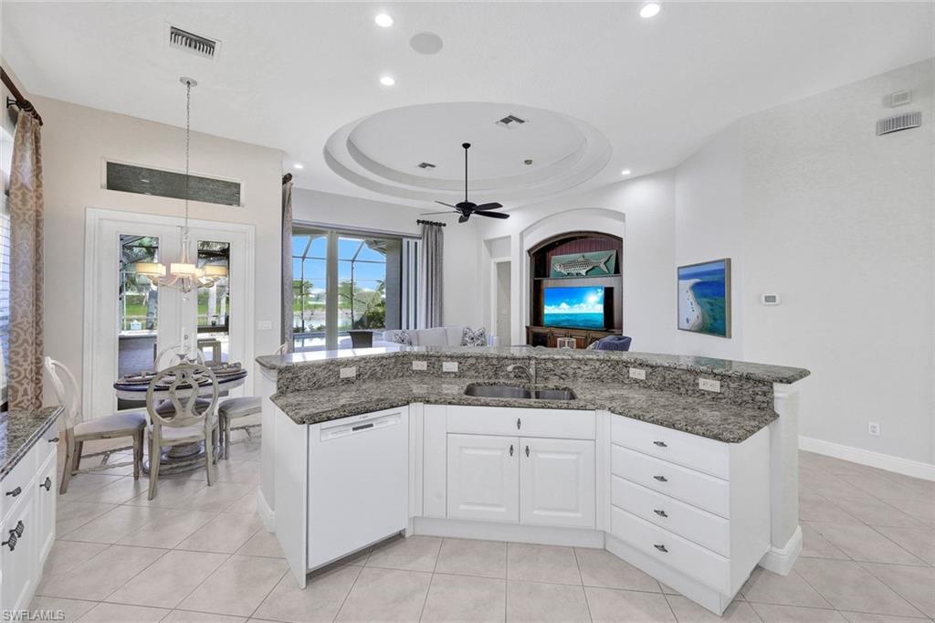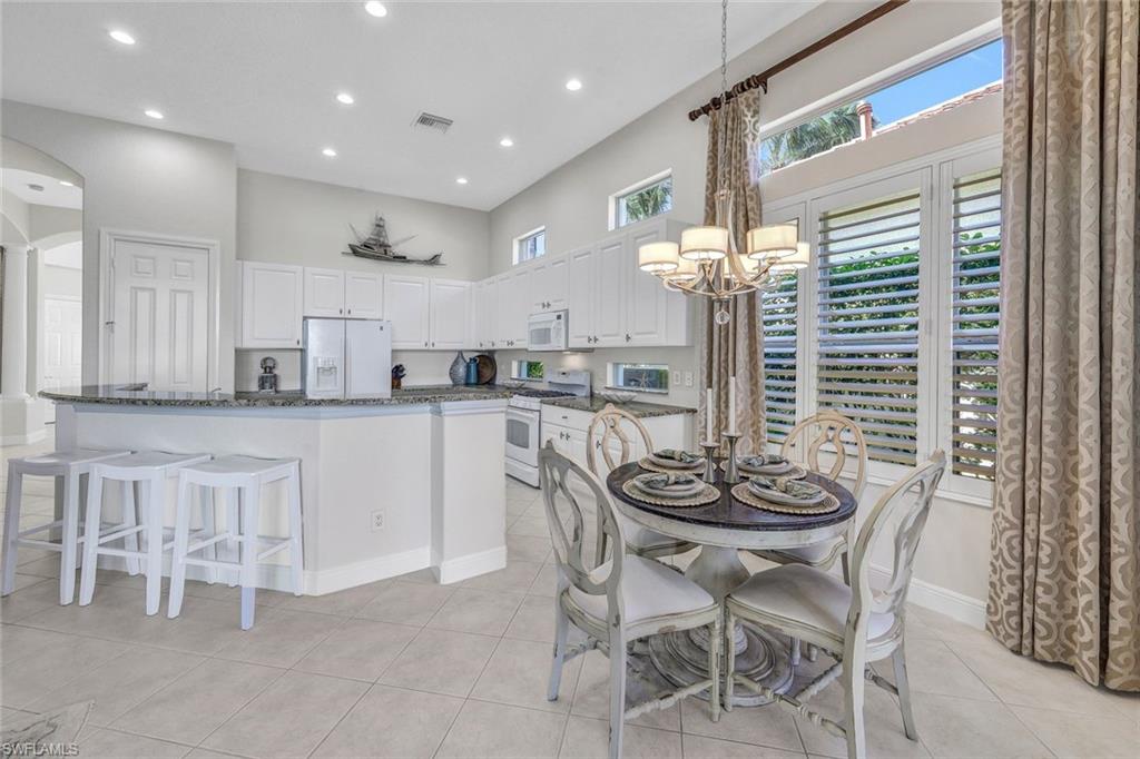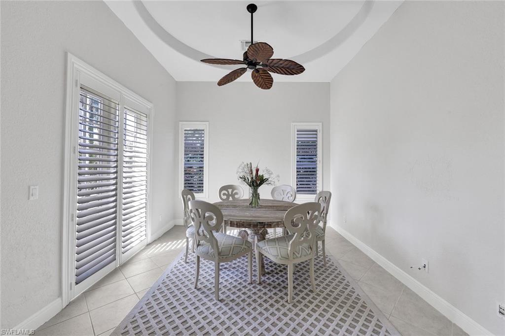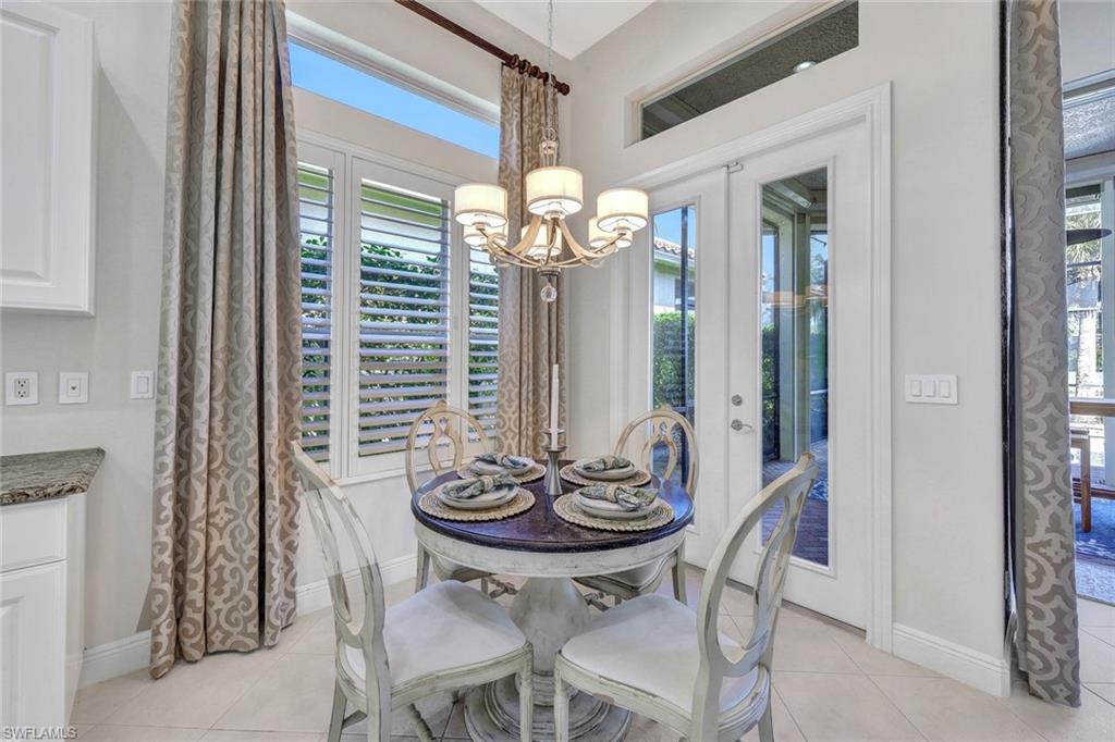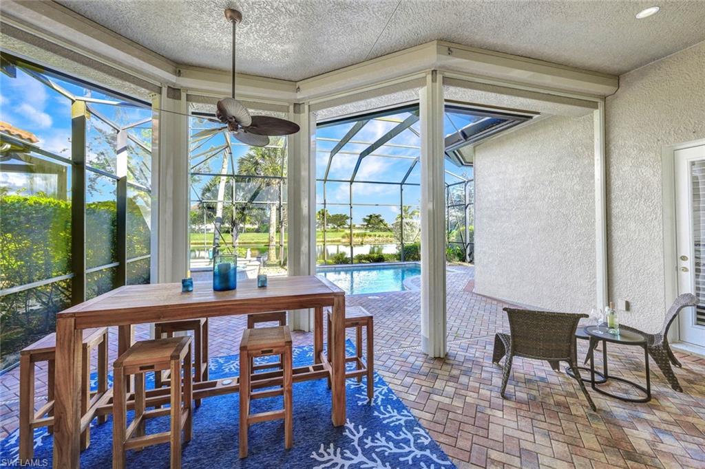 This exceptional Primrose floor plan, located in the highly sought-after Cranberry Crossing enclave of Fiddler’s Creek, showcases a well-appointed three-bedroom-plus-den/private dining residence with sweeping panoramic lake views and a private pool and spa, creating a serene indoor-outdoor living experience. The bright, open kitchen is both functional and inviting, featuring a gas range, solid-surface countertops, and a charming breakfast nook. A thoughtfully designed layout allows for effortless flow from the interior living spaces to the expansive lanai, complete with hurricane-rated drop-down screens—ideal for year-round enjoyment. The primary suite serves as a private retreat with wood flooring, dual vanities, a relaxing garden tub, and a frameless glass shower. Residents of Fiddler’s Creek enjoy an award-winning, gated lifestyle with resort-style amenities including a community pool and spa, tennis, pickleball, bocce ball, a sauna, on-site dining, and optional golf, marina, and beach memberships. Ideally situated near Marco Island, downtown 5th Avenue South’s upscale shopping and dining, pristine white-sand beaches, and nearby marinas for boating and kayaking, this vibrant community also offers an active social scene and exceptional coastal living.