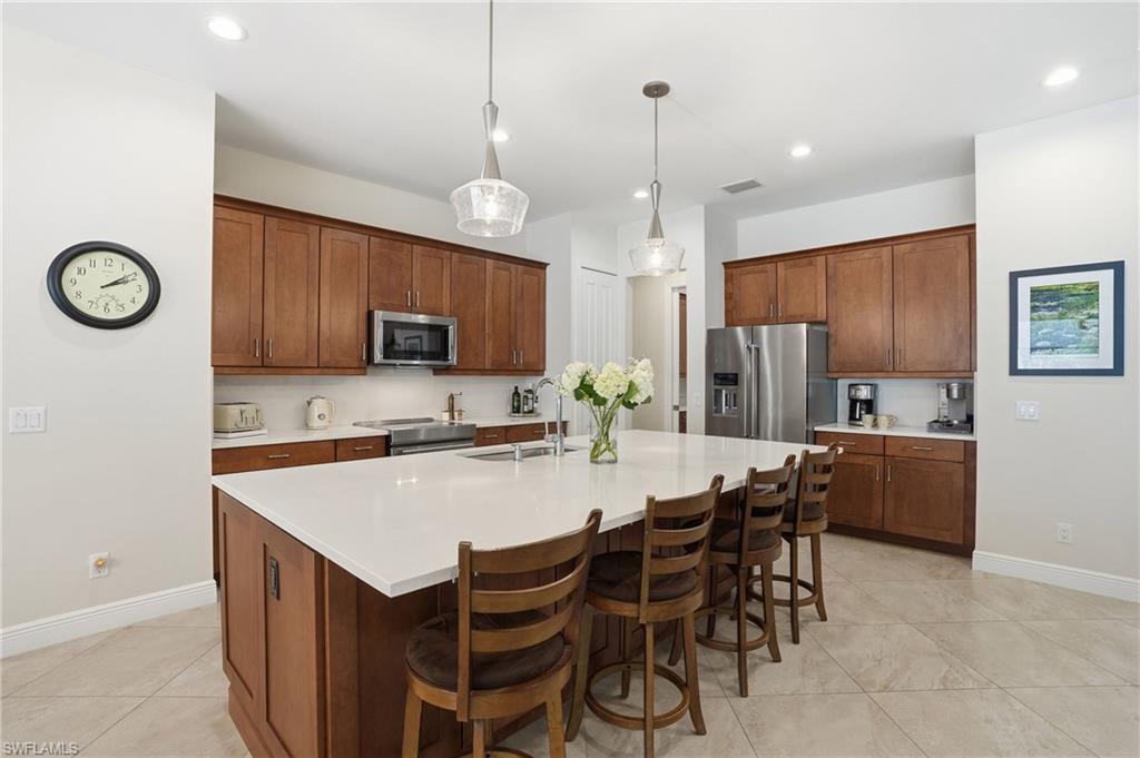 Experience comfort, space, and privacy in highly coveted Weber Woods. Set on an impressive 2.73-acre homesite, this 4-bedroom plus den, 3-bath pool and spa home offers the perfect blend of country serenity and modern convenience in one of Naples’ most desirable estate-lot communities. A long paver driveway welcomes you home, creating a sense of arrival and privacy from the moment you enter the property. Inside, the residence features a spacious, open layout with warm, earthy tones and thoughtful upgrades throughout. The chef-inspired kitchen boasts an oversized island, solid wood cabinetry with plenty of pull out shelves, a butler’s pantry, and a layout ideal for both everyday living and entertaining. An extra-large dining area provides the perfect setting for gatherings of any size. The dedicated den offers flexibility for a home office, hobby room, or quiet retreat. The home is equipped with impact-resistant windows and doors, solid wood plantation shutters, and electric shades for added comfort and style. A whole-house reverse osmosis system, Generac generator, and two 500-gallon propane tanks provide peace of mind and self-sufficiency. Step outside to an extended screened lanai overlooking the sparkling salt-water pool and spa—already plumbed for a future summer kitchen—making outdoor living effortless. A custom fire pit area adds another inviting space to relax and enjoy the tranquil, country-like setting. The 3-car garage offers abundant storage, while the expansive acreage provides endless possibilities for gardening, pets, play areas, or future enhancements. Located in the heart of Weber Woods, this property delivers the rare combination of space, privacy, and convenience—just minutes from shopping, dining, top-rated schools, and Naples’ world-class beaches. A truly exceptional opportunity to enjoy estate-style living in a coveted Naples location.