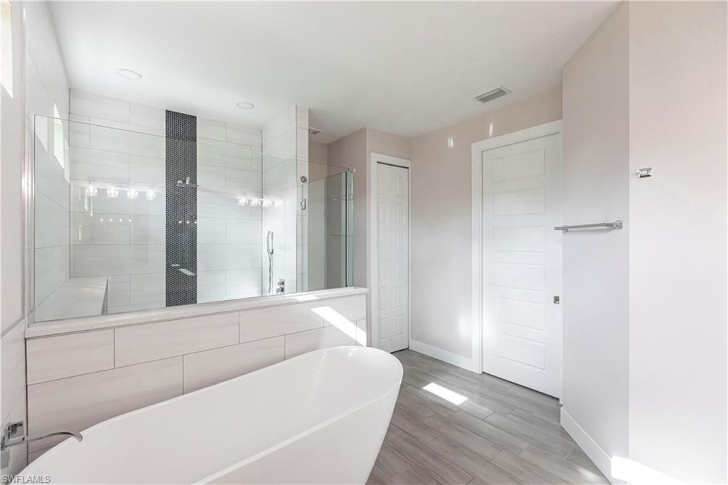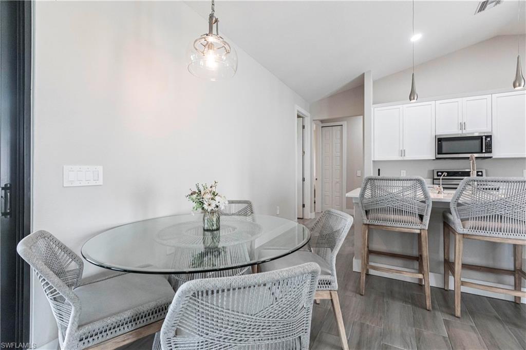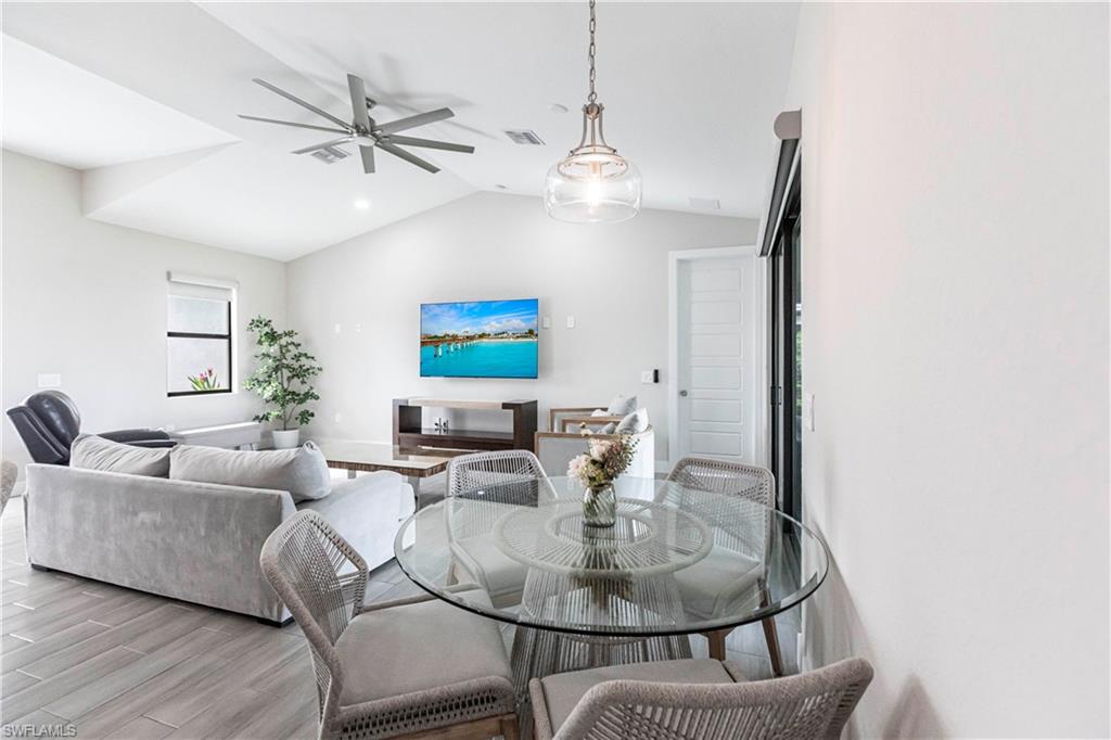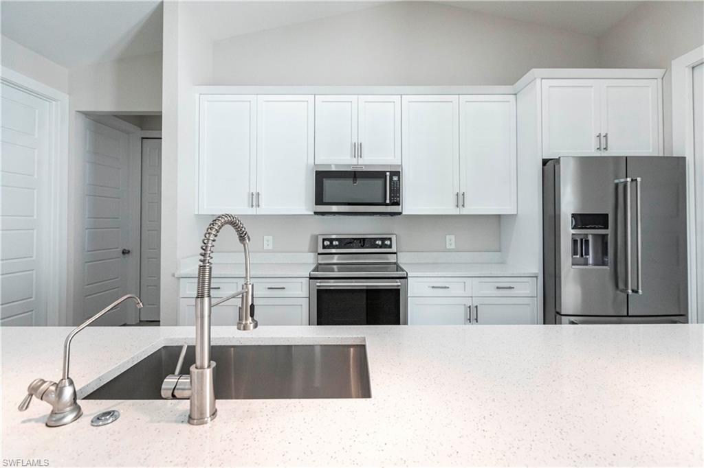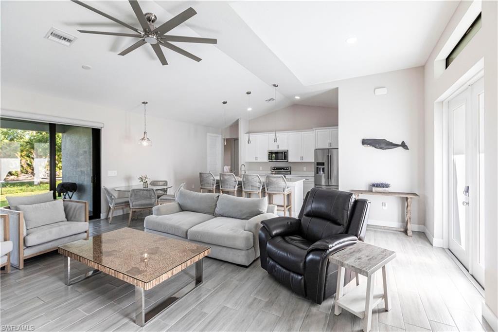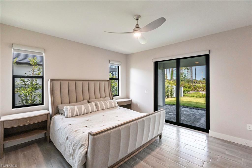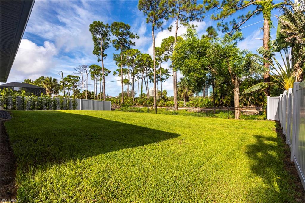 Nearly new construction, set directly on the Saltleaf Golf Preserve in Bonita Springs, this modern golf course 4-bedroom, 2-bath home is located in El Dorado Acres, a quiet no-HOA neighborhood west of U.S. 41. Built in 2023 and thoughtfully enhanced since, the single-story residence provides bright, open living with tile flooring throughout, quartz countertops, custom wood cabinetry, stainless-steel appliances, and abundant natural light. The open-concept layout flows seamlessly from the kitchen to the living area and out to the backyard, for entertaining or everyday living. The primary suite is a private retreat with golf course views and a spa-inspired bath featuring a soaking tub, walk-in shower, dual vanities, and his and her walk-in closets. Three additional bedrooms have flexibility for guests or a home office. Impact-rated windows and doors provide added peace of mind. The west-facing, fully fenced backyard overlooks the golf course, offering peaceful preserve views and room for a pool. Just minutes from Bonita Beach, Barefoot Beach, Lovers Key, Coconut Point Mall, the Hyatt Regency Coconut Point, and the future Ritz-Carlton Residences with public marina access, this home exemplifies modern comfort, lifestyle freedom, and an exceptional location.