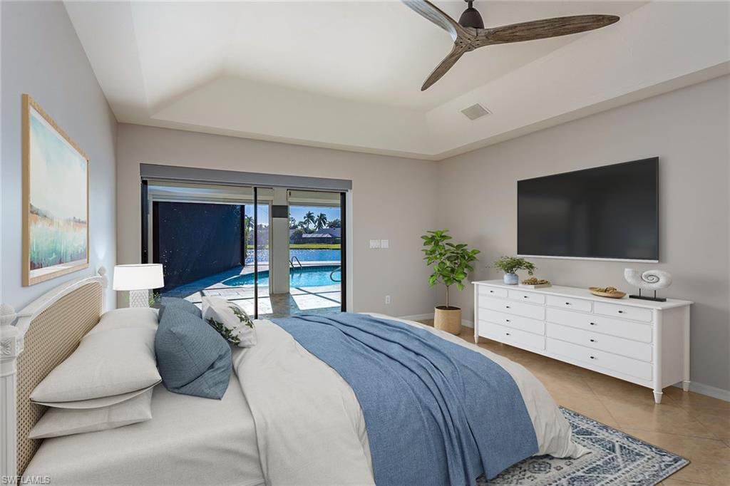 It’s all about the view! Enjoy beautiful lake vistas from this Southeastern exposure updated home in sought-after King’s Lake. Over 3,000 square feet of living area includes a living and dining room with volume ceilings and sliders to the lanai, an upgraded eat-in kitchen with stainless steel appliances and stone countertops, four bedrooms, three updated full baths (two with dual sinks) and a large family room with soaring ceilings and an oversized window to take in the long lake view. The split floor plan flows effortlessly while offering privacy for overnight guests and makes entertaining a breeze. This home has tile throughout and recent upgrades of electric shades, wiring for speakers in various rooms, picture window screens on the lanai, new pool equipment and more. The screened pool area includes a fabulous outdoor kitchen area with a gas grill, griddle and a nicely sized covered area with skylights and storm protection. Outside the lanai, a sundeck has been added for relaxing lakeside. Kings Lake is a well-established neighborhood with mature landscaping, walking and jogging paths, easy access to the Greenway, tennis/pickleball courts and offers a nice sense of community. Publix, Starbucks, restaurants and various services like cleaners and a spa are in the Kings Lake Shopping Square. Fifth Avenue and its nearby beaches, Bayfront and the new Gulfshore Playhouse theatre are nearby for entertainment. Easy to show!