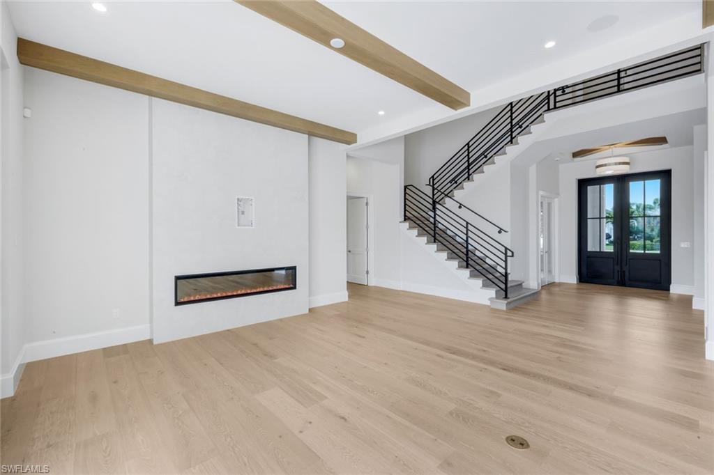 Discover a serene lakefront sanctuary in one of Naples’ most picturesque gated communities. Winding brick streets and lush, thoughtfully designed landscaping lead you to this stunning corner-lot home, where indoor and outdoor living blend effortlessly. The expansive lanai invites relaxation and entertaining with a sparkling pool, spa, and fully equipped outdoor kitchen, all set against tranquil lake views. A fenced yard and open green space offer a safe haven for children and pets to explore. Inside, the gourmet kitchen boasts GE Monogram appliances, while a striking wood-beam ceiling and cozy fireplace create warmth and charm. Perfectly positioned near Seed To Table, Gulf beaches, Mercato, and SW FL International Airport, this home combines convenience with the leisurely elegance of The Promenade lifestyle. This lakefront retreat is a true embodiment of comfort, sophistication, and effortless Florida living.