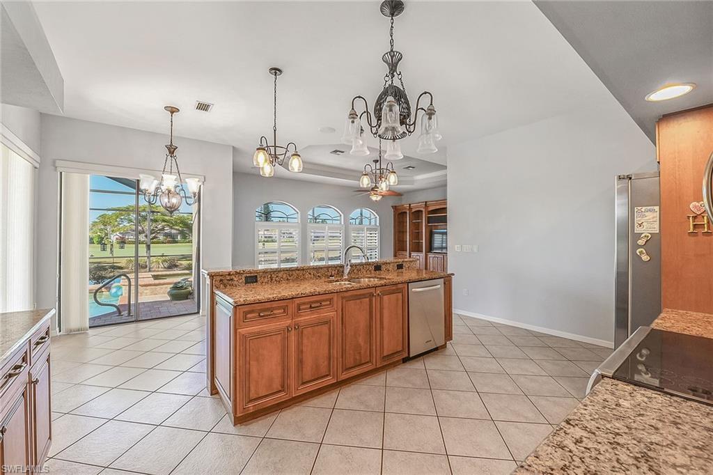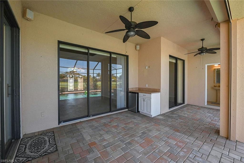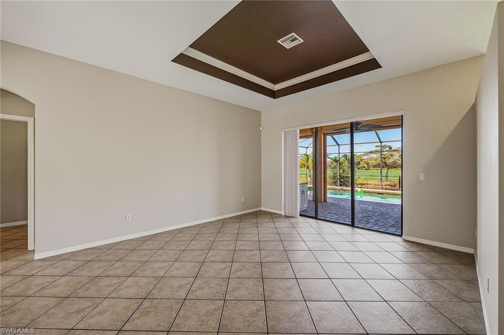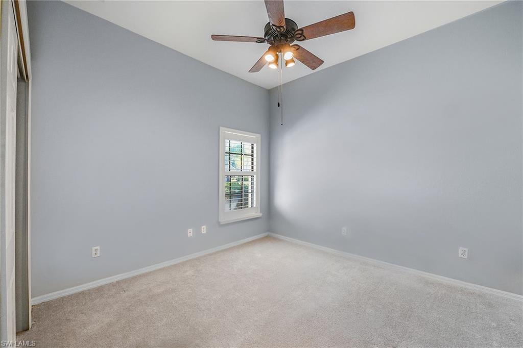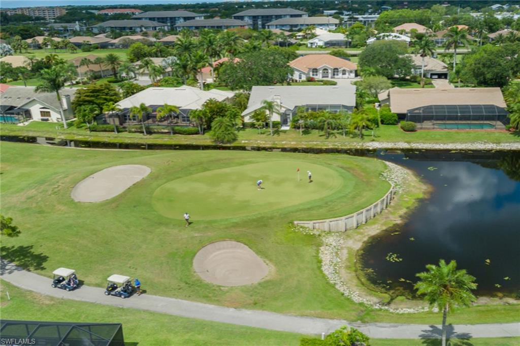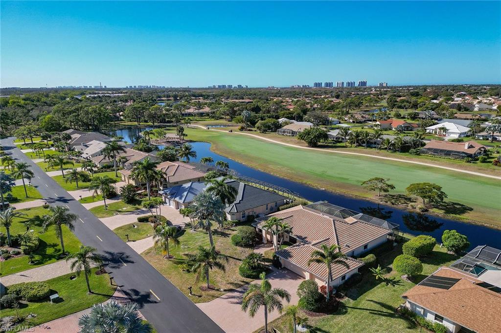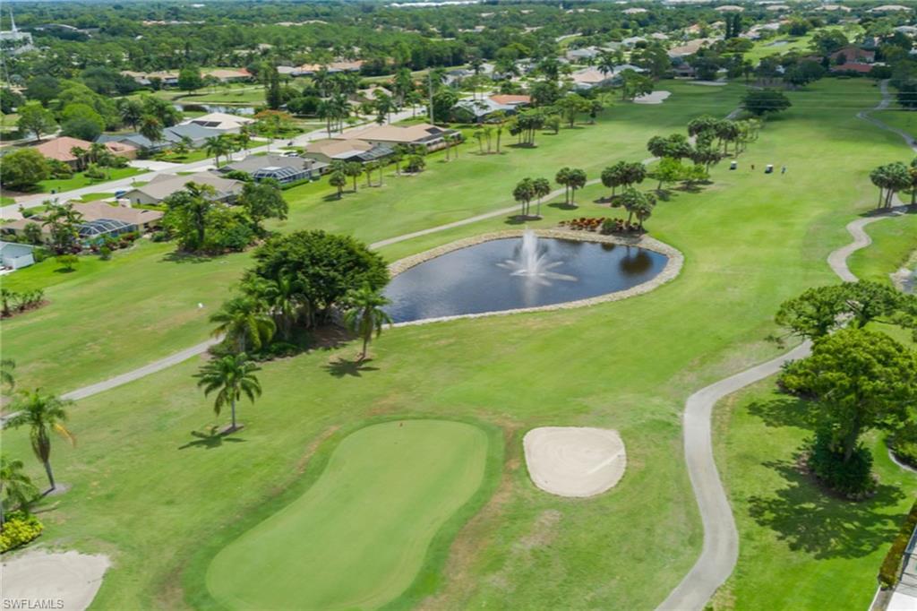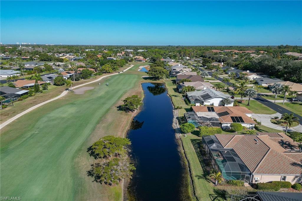 Scenic golf course views await you in this move-in-ready three-bedroom, 2.5-bath home in Spanish Wells, a vibrant golf and tennis community featuring a clubhouse, restaurant, fitness center, 27 holes of golf, an aqua driving range, tennis, pickleball, beautiful scenery and many more amenities for an active lifestyle. This well-maintained home highlights oversized living areas ideal for entertaining friends and family, an expansive pool deck with a pool and spa, and a pool bath added for extra convenience. The main suite offers easy access to the lanai, a large en-suite bath with a walk-in shower, soaking tub and dual walk-in closets. Other noteworthy features include high tray ceilings, a formal dining room, electric hurricane shutters, tile throughout and more. Spanish Wells is a pet-friendly and guard-gated community, offering different levels of membership for golf, sports, social and dining. On n Bonita Beach Rd just east of U.S. 41, it provides easy access to shopping, dining, the beach and entertainment.