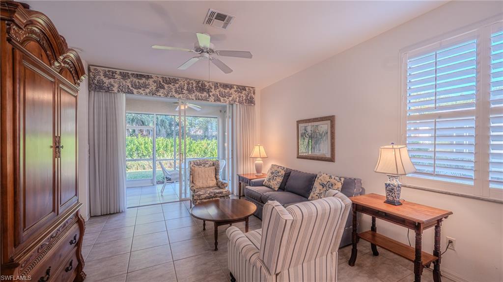 2 CAR END UNIT VILLA Rarely available!! 2-bedroom + a den, 2-bath villa in the highly sought-after golf community of Country Creek. Offered fully furnished, turnkey, this home is ready for you to move right in. The versatile den could also double as additional space for visiting guests. Relax on your private front or rear screened in lanai, ideal for morning coffee or evening dinners while soaking in the Florida sunshine. The home is equipped with an electric hurricane shutters off the rear lanai for peace of mind. Country Creek is a lush, resort-style community offering an 18-hole executive bundled golf course with low cart fees, five clay tennis courts, bocce leagues, and five sparkling swimming pools. The vibrant Village Clubhouse features a full-service restaurant and bar, fitness center, card rooms, and endless activities to enjoy. Perfectly located between Naples and Fort Myers, you’ll be just minutes from I-75, RSW International Airport, Florida Gulf Coast University, Coconut Point Mall, Miromar Outlets, upscale & casual dining, and world-class beaches. This villa combines comfort, convenience, and resort-style living—all in one of Southwest Florida’s most desirable bundled golf communities.