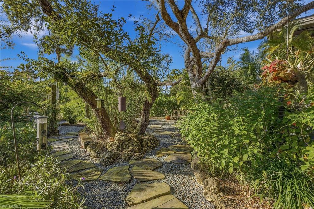 This rare, .54-acre, double-lot home with only one membership fee is one of the unique and special properties available within Hideaway Beach. The home is among the beautiful, mature botanical gardens created and meticulously maintained by the owners. The residence has endless charm and character, and you feel as though you are in a treehouse set atop the incredible setting. This was the second property built in Hideaway and over the years has been transformed into a tropical, extremely private bungalow. With numerous windows/impact sliders throughout, there is abundant natural light coming through. Offering three bedrooms plus den and three baths. What makes the property so special is the endless outdoor living spaces. Multiple decks that overlook the garden and pathways and over 1,500 square feet of lower-level screened lanai creating endless opportunities for entertaining, recreation and easy access to your park-like setting. The property is in the heart of Hideaway Beach, just a quick golf cart ride to the beach club with formal/informal beach and gulf-side dining, community pool/spa and the new, state-of-the-art sports and wellness center. Featuring top-of-the-line fitness equipment, group exercise rooms, personal/group training, multiple golf simulator bays, physical therapy, nutritional counseling, well-appointed locker rooms with spa-like amenities, drink bar and more. Hideaway Beach is one of Marco Island's hidden gems and is more than just a community, it's a lifestyle. Designed to enhance residents' quality of life through array of amenities, programs available and social environment. Guard-gated entry, over two-miles of beach, nine-hole golf course, tennis, pickleball and more. This represents the least expensive home in Hideaway Beach at time of listing and priced for a quick sale. A must-see to appreciate.