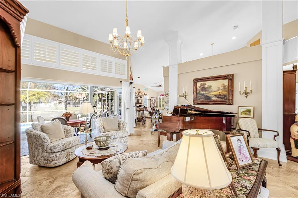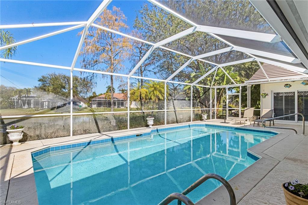 This stunning 4-bedroom, 3-full bathroom residence is situated in the highly sought-after Monterey community in Orange Blossom, a premier location known for its desirable lifestyle and convenient access to Southwest Florida's pristine beaches, high-end shopping and fine dinning. Spanning a generous .33-acre lot, this property offers serene lake views complemented by lush, mature landscaping that enhances privacy and curb appeal. The expansive outdoor space features a refreshing lap pool, perfect for exercise or relaxation in the Florida sunshine. Step inside to soaring ceilings accented by elegant crown molding, creating an open and airy atmosphere. the home is bright and full of natural light, thanks to new hurricane proof windows and sliding doors paired with Bermuda wooden shutters throughout. Luxurious imported Italian 24" stone tile flooring flows seamlessly across the living areas. The custom kitchen showcases fine wood cabinetry, granite countertops, and premium stainless steel appliances, including a Thermador stainless steel refrigerator. Granite countertops extend into the bathrooms, where you'll find a relaxing jet tub in the guest bathroom. Formal dining and living rooms provide ideal spaces for entertaining. additional recent upgrades include a new roof installed in 2019 with durable flat tiles. New AC unit, pool water heater, and ful-house generator with a 500 gallon buried propane tank were installed in 2022. Residents enjoy exclusive access to the community's 24-hour manned guard gate for enhanced security. The renovated clubhouse is a standout feature, boasting a state-of-the-art indoor gym, billiard room with pool table, card room, gathering room, and library. outdoors, take advantage of a covered children's play area, heated clubhouse lap pool, 3 Har-True clay tennis courts, and a basketball court offering resort-style amenities right at home. this exceptional property combines modern upgrades, timeless elegance, and an unparalleled community lifestyle in one of Naples's most desirable neighborhoods. Ideal for those seeking luxury, comfort, and convenience in Southwest Florida.