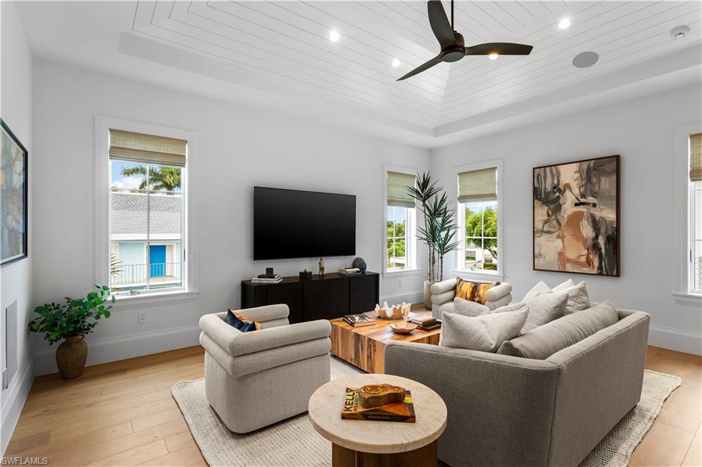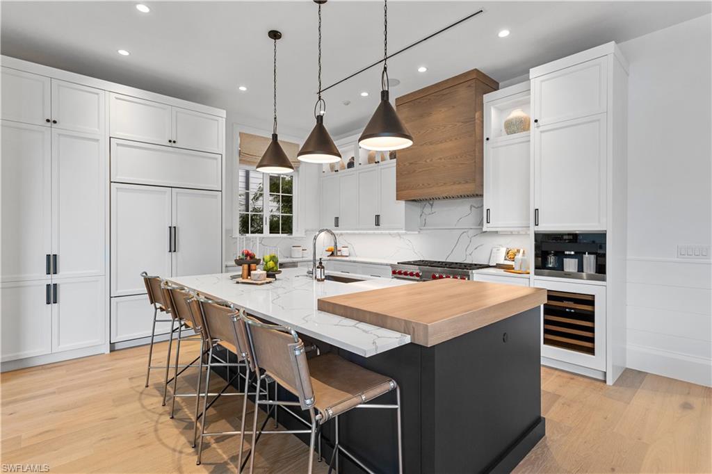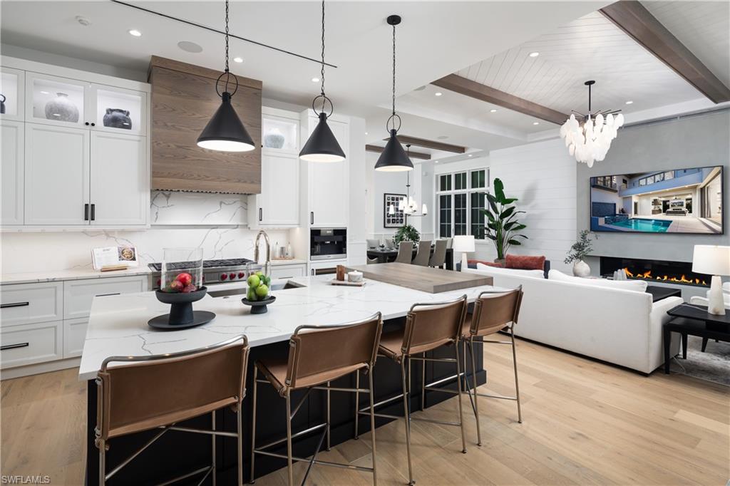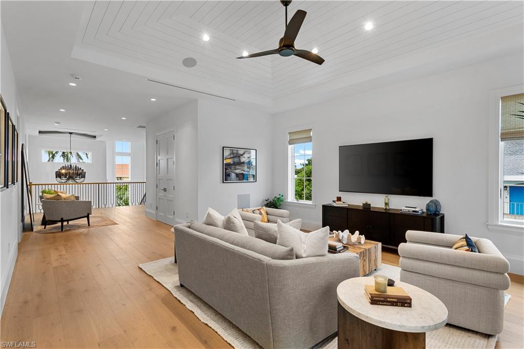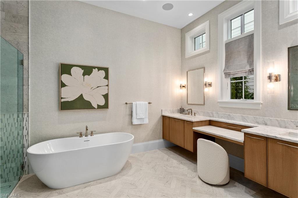 Set along one of Old Naples’ quiet, palm-lined streets and just a short stroll from the Gulf and Third Street South, 835 11th Avenue South presents modern craftsmanship with timeless design. Built by Lotus Construction, in collaboration with MHK Architecture and Freestyle Interiors, the home reflects a thoughtful approach to scale, proportion, and livability rather than excess. The residence spans more than 4,700 square feet of interior living space and is arranged to support both privacy and connection, offering four ensuite bedrooms and six bathrooms featuring Neorest Toto toilets. On the main floor, the primary suite is intentionally positioned for convenience and discretion, featuring a spa-inspired bath with a soaking tub, glass-enclosed shower, floating dual vanities, private water closet, and the added luxury of an in-suite washer and dryer—ideal for true single-level living. The heart of the home is defined by soaring ceilings, abundant natural light, and a calm material palette. Wide-plank white oak flooring, tailored millwork, and soft neutral tones establish a refined backdrop for daily life. The kitchen is both elegant and highly functional, outfitted with integrated refrigeration, dual wall ovens, concealed storage, and streamlined cabinetry that transitions seamlessly into the dining and great room. Large hurricane-impact sliding doors open the interior to the outdoor living area, creating an effortless indoor-outdoor connection. A thoughtfully finished elevator provides smooth access between levels. Upstairs, a private VIP suite offers exceptional flexibility, complete with its own living area, full bath, and two balconies—well suited for extended guests or multi-generational living. Two additional guest suites and a dedicated laundry room complete the upper level, and a home generator is in place for additional peace of mind. Outdoors, the rear courtyard is designed for relaxed entertaining, centered around a custom pool and spa, covered lounge, full outdoor kitchen, and pool bath. The setting is private and quiet, enhanced by alley access. A three-car garage—an uncommon amenity in Old Naples—features extra ceiling height suitable for vehicle lifts or specialized storage. Just blocks from Naples’ most celebrated dining, boutiques, and cultural destinations, this home delivers a rare combination of architectural discipline, location, and immediate enjoyment. It is a residence defined by enduring quality and thoughtful design—crafted to be appreciated long after the first impression.