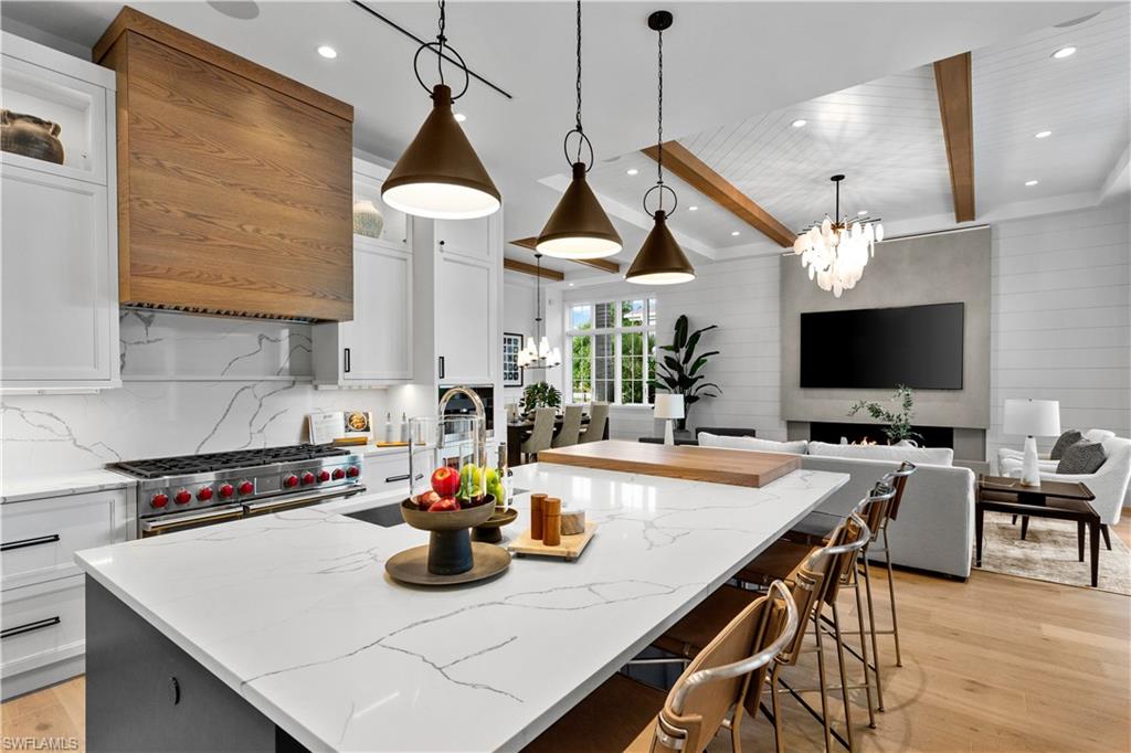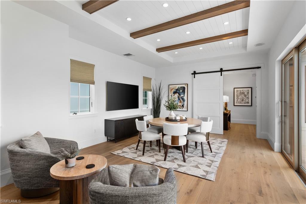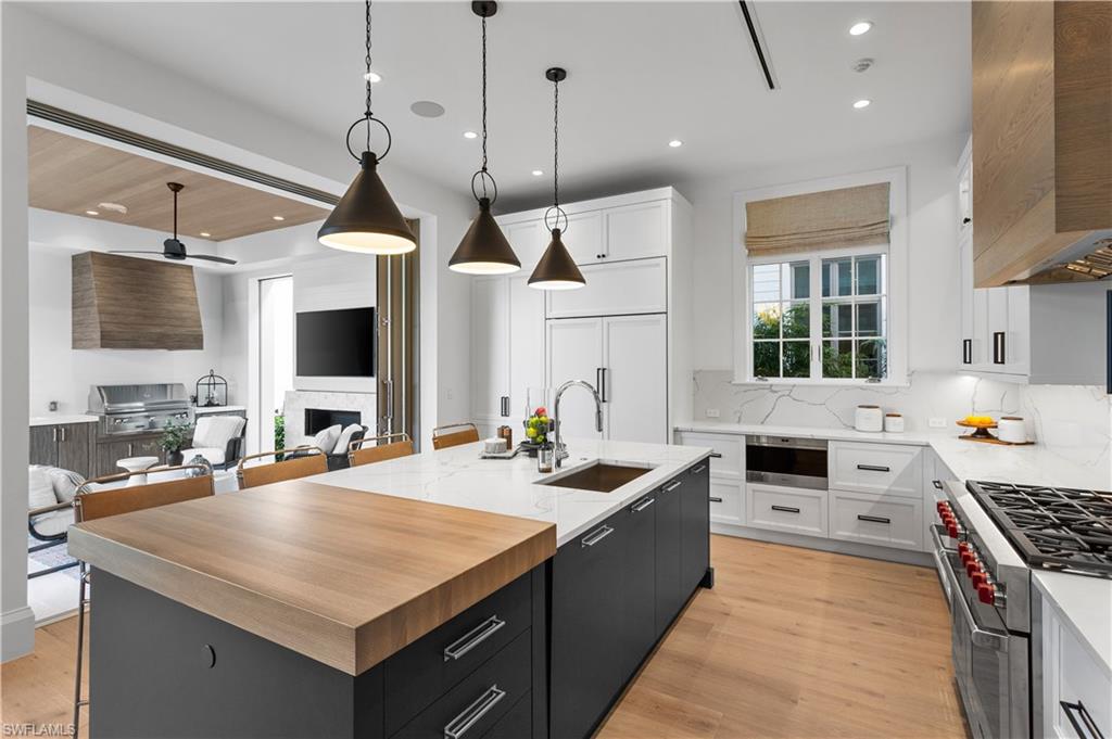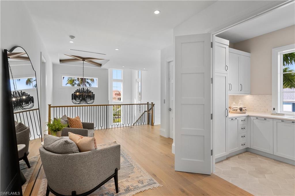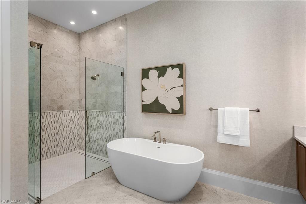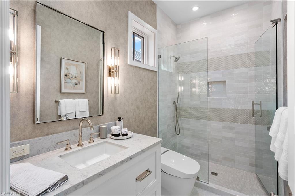 Set along one of Old Naples’ quiet, palm-lined streets and just a short stroll from the Gulf and Third Street South, 835 11th Avenue South presents modern craftsmanship with timeless design. Built by Lotus Construction, in collaboration with MHK Architecture and Freestyle Interiors, the home reflects a thoughtful approach to scale, proportion, and livability rather than excess. The residence spans more than 4,700 square feet of interior living space and is arranged to support both privacy and connection, offering four ensuite bedrooms and six bathrooms featuring Neorest Toto toilets. On the main floor, the primary suite is intentionally positioned for convenience and discretion, featuring a spa-inspired bath with a soaking tub, glass-enclosed shower, floating dual vanities, private water closet, and the added luxury of an in-suite washer and dryer—ideal for true single-level living. The heart of the home is defined by soaring ceilings, abundant natural light, and a calm material palette. Wide-plank white oak flooring, tailored millwork, and soft neutral tones establish a refined backdrop for daily life. The kitchen is both elegant and highly functional, outfitted with integrated refrigeration, dual wall ovens, concealed storage, and streamlined cabinetry that transitions seamlessly into the dining and great room. Large hurricane-impact sliding doors open the interior to the outdoor living area, creating an effortless indoor-outdoor connection. A thoughtfully finished elevator provides smooth access between levels. Upstairs, a private VIP suite offers exceptional flexibility, complete with its own living area, full bath, and two balconies—well suited for extended guests or multi-generational living. Two additional guest suites and a dedicated laundry room complete the upper level, and a home generator is in place for additional peace of mind. Outdoors, the rear courtyard is designed for relaxed entertaining, centered around a custom pool and spa, covered lounge, full outdoor kitchen, and pool bath. The setting is private and quiet, enhanced by alley access. A three-car garage—an uncommon amenity in Old Naples—features extra ceiling height suitable for vehicle lifts or specialized storage. Just blocks from Naples’ most celebrated dining, boutiques, and cultural destinations, this home delivers a rare combination of architectural discipline, location, and immediate enjoyment. It is a residence defined by enduring quality and thoughtful design—crafted to be appreciated long after the first impression.