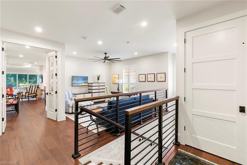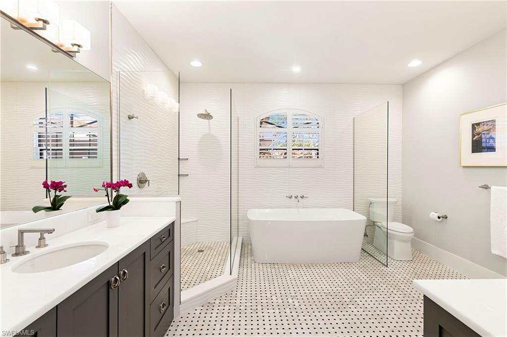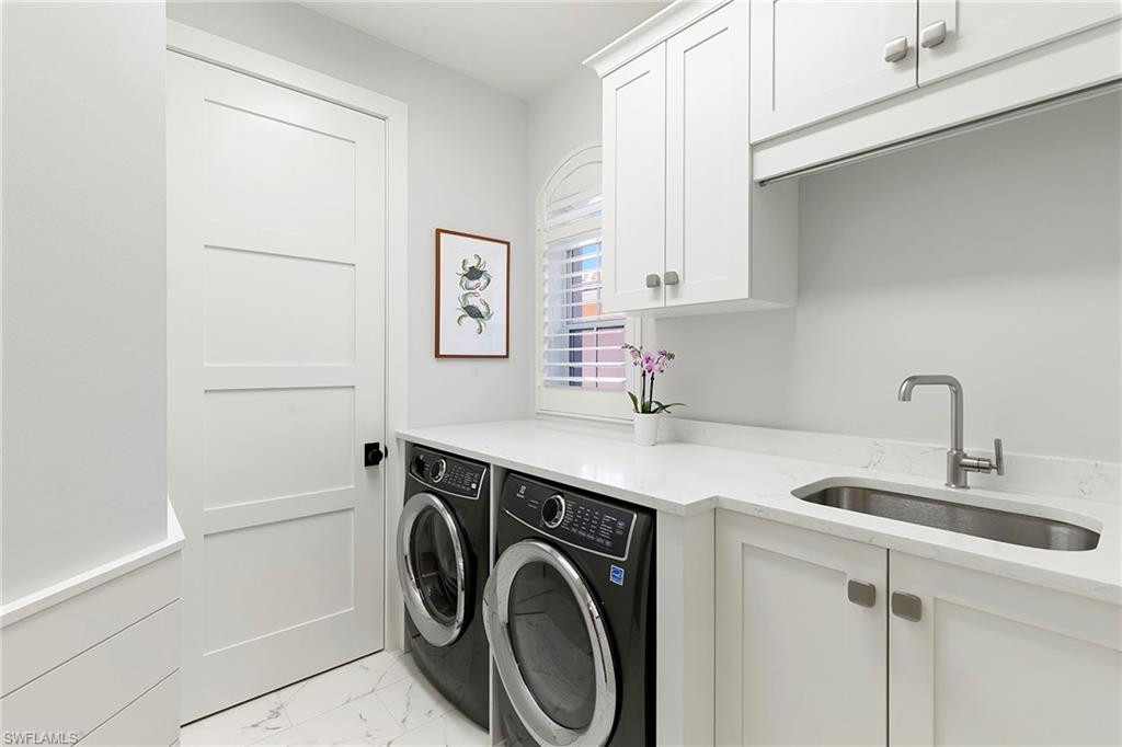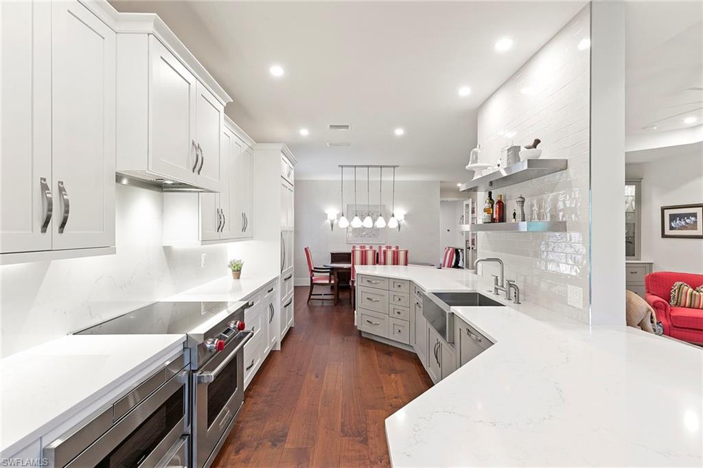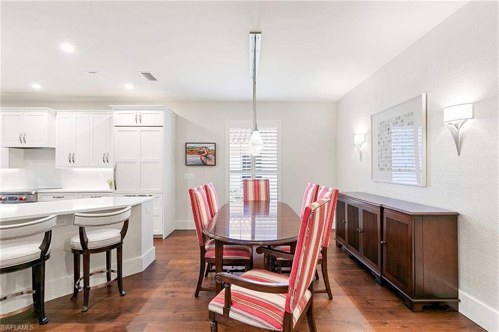 Perched on the second floor in Covington Row at Crescent, this completely renovated Pelican Bay coach home is the kind of place that makes you exhale the moment you go in, with peaceful golf course views across the 5th hole of the Bay course and a light, elevated feel that instantly says you're home. The residence lives beautifully with three bedrooms and a generous loft (ideal as a second lounge or office) and 2.5 baths, along with the rare luxury of a private elevator and two-car attached garage. Thoughtful finishes include wood flooring, custom tile in the baths and laundry, plantation shutters, electric blinds over the sliders, and a built-in living room bar that makes entertaining feel effortless. The kitchen remodel is designed for people who actually love to cook and host, featuring custom wood cabinetry, quartz countertops, a custom backsplash, and a premium lineup of Wolf and Sub-Zero appliances. All baths were also fully renovated with custom tile, frameless showers and designer vanities. Crescent is a gated community, ideally near Pelican Bay Wellness Center, close to daily conveniences like Publix at Pavilion and Whole Foods at Mercato, with a short bike ride to the beach tram. From there, it's pure Pelican Bay, beach clubs, dining, tennis, pickleball, theater and the easy rhythm of life by the Gulf.