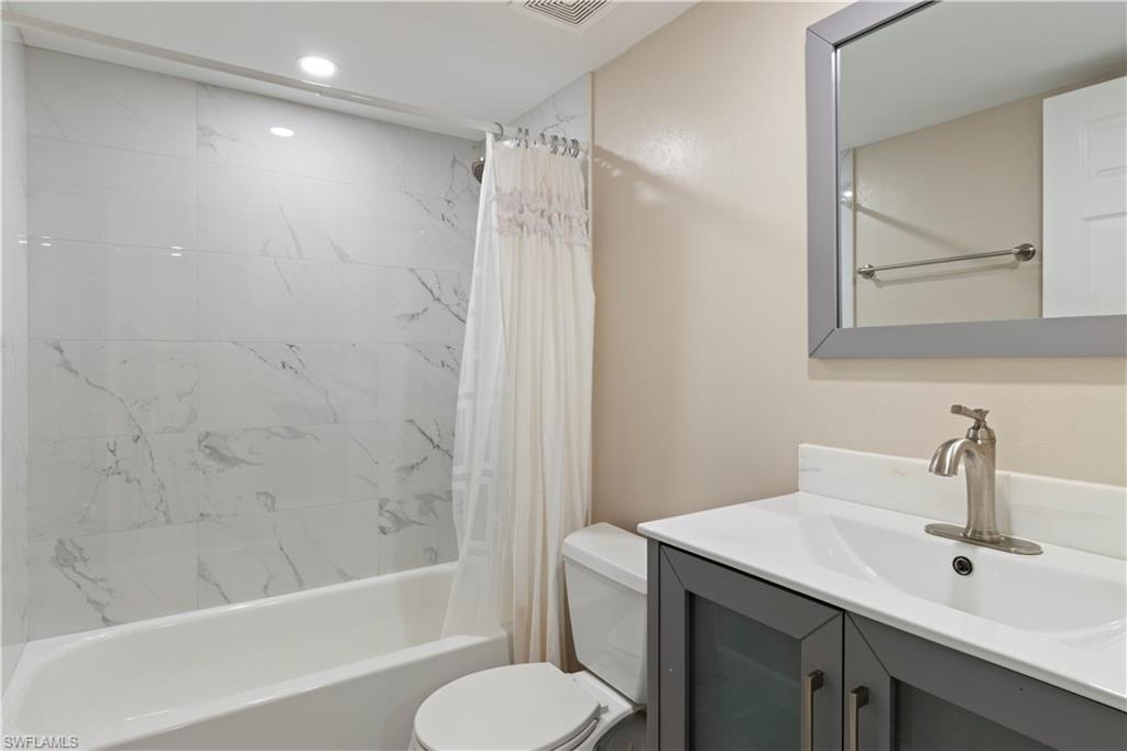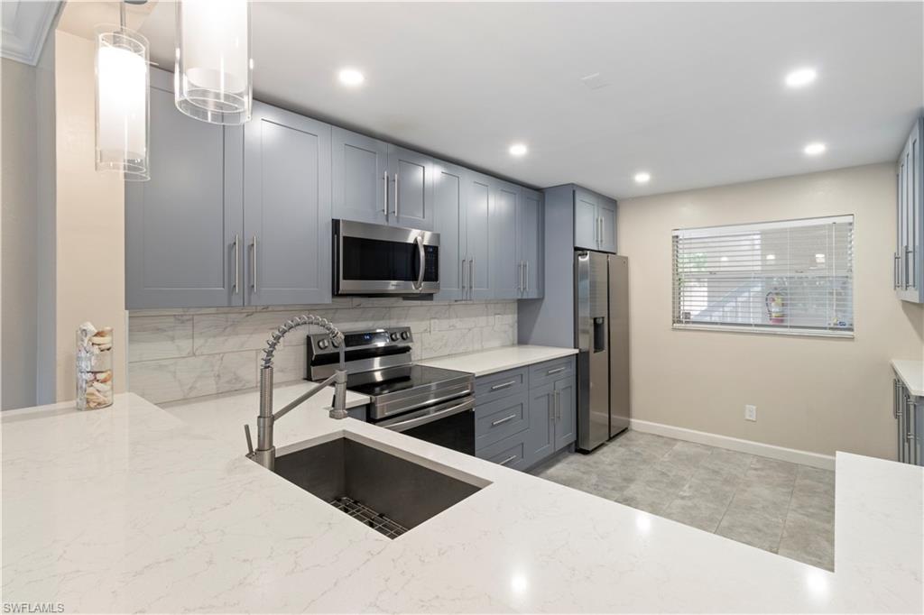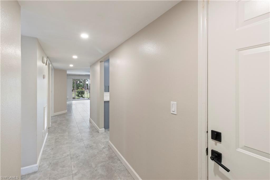 Well-maintained and recently updated first-floor end unit offering 3 bedrooms, 2 full bathrooms, and a functional split-bedroom layout in the heart of Berkshire Lakes. This residence features new tile flooring throughout, an updated kitchen with quartz countertops and stainless-steel appliances, and refreshed lighting that gives the space a clean, modern feel. The screened lanai provides a peaceful outdoor extension with convenient access to the community pool, while the end-unit position allows for added privacy and natural light. A covered carport is included for everyday convenience. Centrally located, just minutes from Berkshire Commons Plaza with shopping, dining, and everyday essentials, and within easy reach of Downtown Naples, beaches, golf courses, and major roadways. Ideal for annual tenants seeking space, location, and low-maintenance living in a well-established community.
