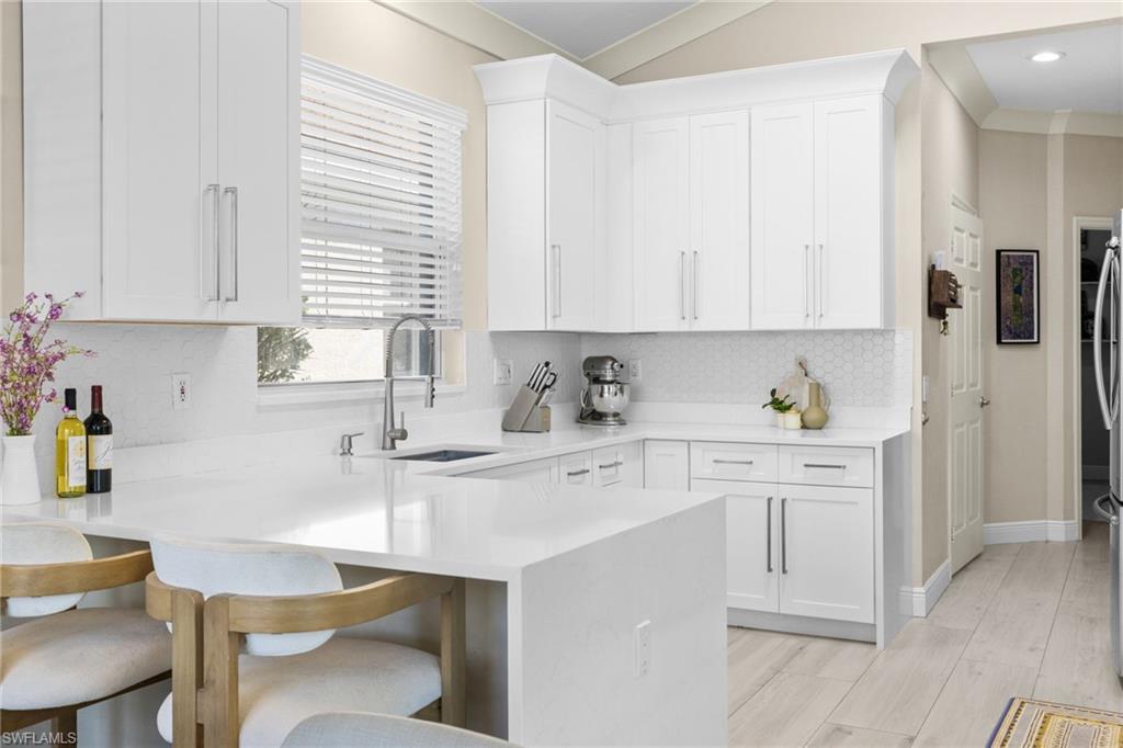 Mornings at 1869 Pondside Lane unfold with a particular rhythm—sunlight over the fairway, coffee by your private pool, the kind of quiet that makes you wonder why it took so long to find this pace. Bundled golf membership, new AC, updated kitchen with new cabinetry, and refreshed pool equipment mean nothing is left to address. This isn't borrowed serenity from a shared amenity. This is yours: a private pool on nearly a quarter-acre where custom pavers extend living space and the golf course provides a backdrop that never crowds. Inside, 1,805 square feet reveal what happens when someone invests in doing things right. The kitchen anchors daily life with Pompei white quartz in a waterfall design—the kind of detail that signals intention, not just budget. Twelve-inch porcelain tile flows throughout, creating visual continuity that makes the space feel larger than its footprint. Crown molding in every room elevates what could have been builder-grade into something quietly refined. The three bedrooms provide flexibility—primary suite for your mornings, guest rooms with space to host visitors comfortably because there's actually space to spread out, or the home office that finally has a door. Plantation shutters filter Florida sun without sacrificing the light that makes this feel open, not enclosed. Outside, the extended driveway and pool deck use matching pavers—the kind of cohesive design choice that means someone thought about how the whole property flows, not just the interior. The roof was replaced in 2019. The garage floor has epoxy coating. Gutters handle Florida storms without drama. Stonebridge's newly redesigned championship course by Kipp Schulties is there when you want it. The Bistro, the resort pool, the social calendar—all accessible, none required. Because the best part of living here isn't what the community offers. It's what this home offers: your own pool, your own pace, your own quarter-acre where golf course views meet private retreat and 1,805 square feet feel exactly right.