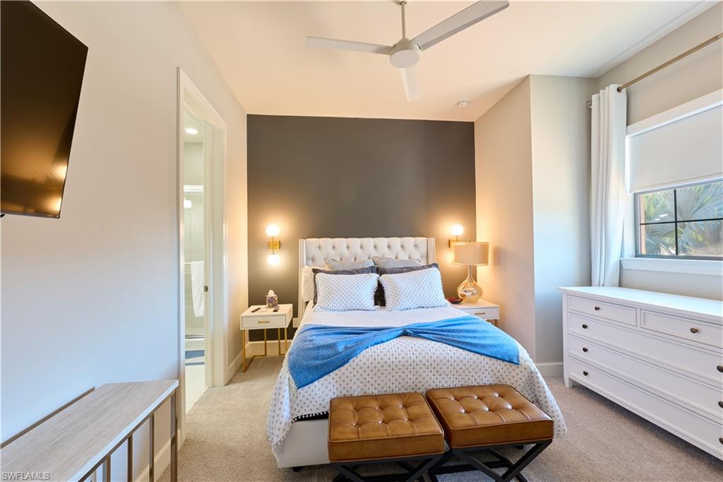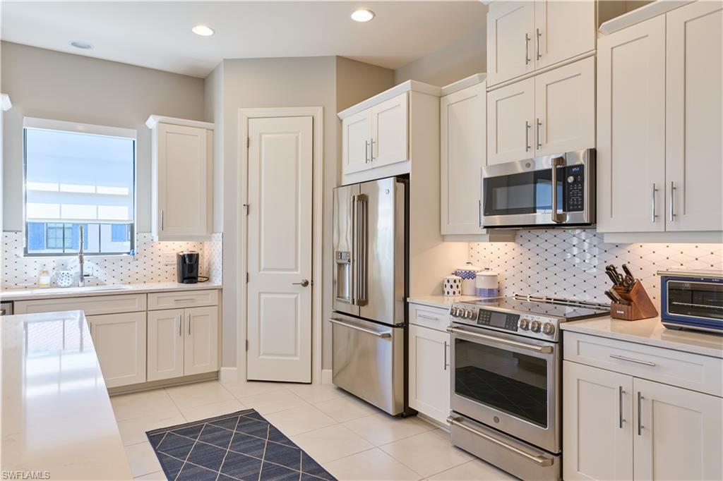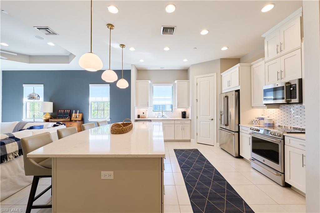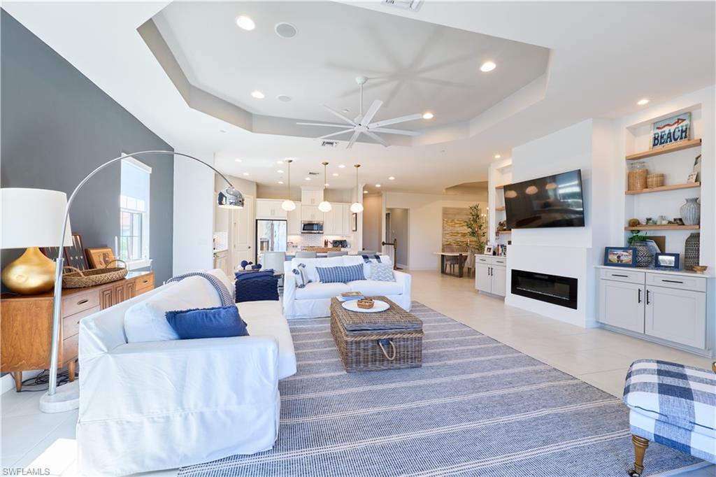 Experience refined country club living in a picturesque North Naples setting. This second-floor end-unit coach home offers a bright, open floor plan highlighted by a generous 9-by-6-foot kitchen island, ideal for both everyday living and entertaining. The living area features zero-corner sliding glass doors that open to a private lanai with tranquil lake views, creating a seamless indoor–outdoor lifestyle. The kitchen and all three baths feature elegant quartz countertops and crisp white cabinetry. A newly installed wine bar, complete with a wine cooler, adds an elegant touch for entertaining and everyday enjoyment. Additional highlights include hurricane-impact windows and doors, soaring 10-foot ceilings, and 8-foot high interior doors. The living area is enhanced by a sleek new electric fireplace. The residence includes an attached one-car garage. A club/sports membership provides access to Esplanade’s exceptional amenities (excluding in-season golf). Residents enjoy six tennis courts, four bocce courts, a state-of-the-art fitness center with aerobics studio, gated dog park, resort-style pool, poolside Bahama Bar, full-service day spa, and a 15,000-square-foot culinary center featuring a restaurant, bar, wine tasting room, and private wine lockers. An exceptional opportunity to enjoy luxury, lifestyle, and leisure in one of North Naples’ most desirable communities.