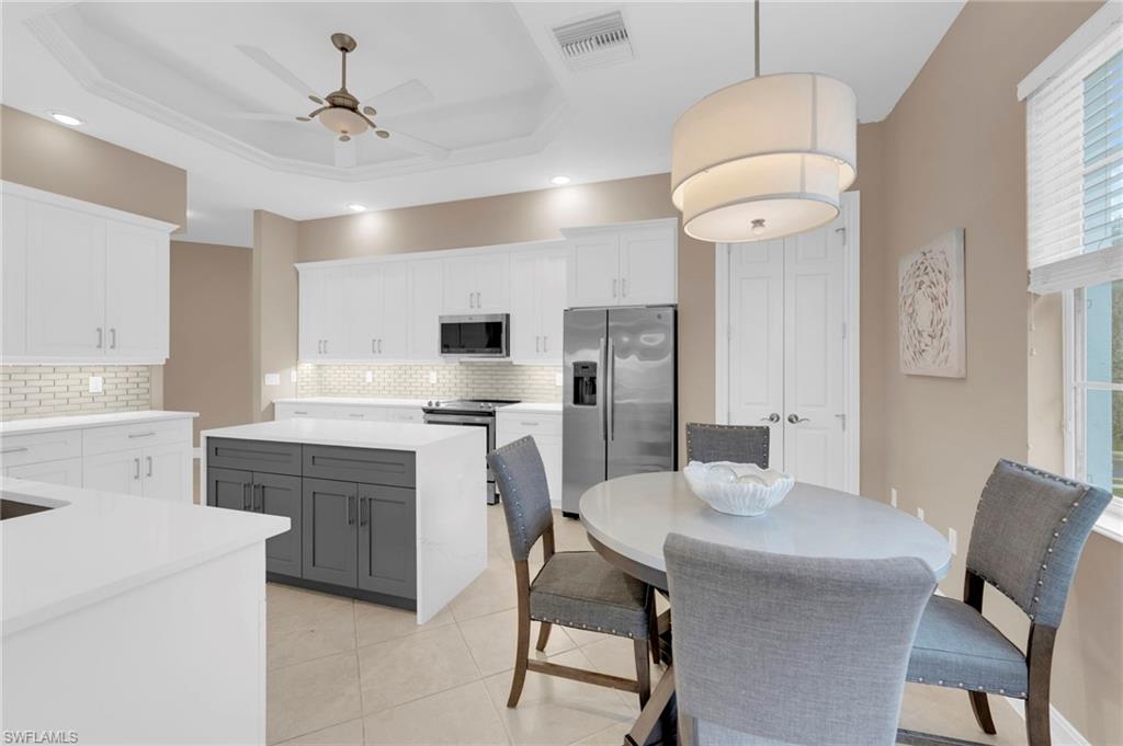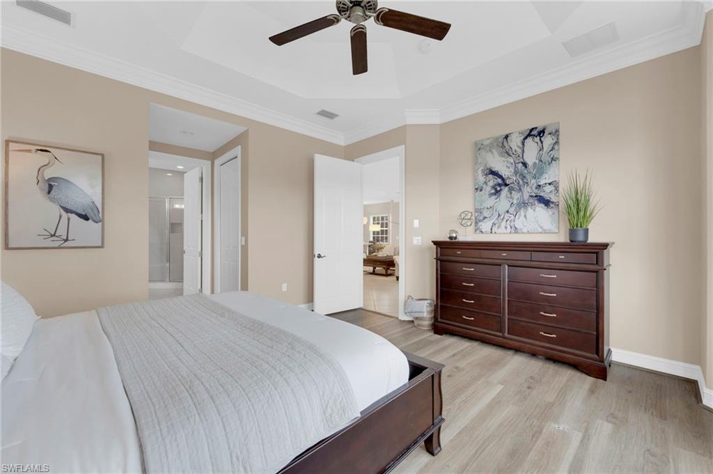 Live minutes from the beach in this move-in ready coach home. Soak in peaceful LAKE VIEWS from the spacious, expansive north-facing LANAI offering a quiet setting for a relaxing evening. HURRICANE-IMPACT SLIDING GLASS DOORS add storm protection & the home also features a PRE-ENGINEERED ELEVATOR SHAFT already built into the two-story floor plan, currently used as 2 STORAGE CLOSETS, but makes this an excellent option for long-term living or future accessibility. Inside, with over 3000 sq ft, the living space feels open & polished w/ 8-FOOT SOLID-CORE DOORS, CROWN MOLDING, & TILE & LUXURY VINYL PLANK FLOORING throughout. The FULLY REMODELED KITCHEN (2022) anchors the home w/ WHITE CABINETRY, QUARTZ COUNTERTOPS, a WATERFALL-EDGE ISLAND, UNDER-CABINET LIGHTING, GLASS BACKSPLASH, CUSTOM WOOD PANTRY SHELVING, BUILT-IN BEVERAGE CENTER w/ WINE FRIDGE, EXPANSIVE BAR, & UPDATED STAINLESS STEEL APPLIANCES including GE STOVE, MICROWAVE, REFRIGERATOR & KITCHENAID DISHWASHER. Flows seamlessly into a spacious living area w/ a FEATURE ACCENT WALL & OVERSIZED 16-FOOT SLIDERS opening to the lanai. The PRIMARY SUITE offers a private retreat w/ ACCENT WALLS, DUAL WALK-IN CLOSETS, & an ensuite bath featuring DUAL SINKS, TRAY CEILING, WALK-IN SHOWER, & JETTED SOAKING TUB. Three additional generously sized GUEST BEDROOMS, a FLEX SPACE perfect for an office or media room, & TWO FULL GUEST BATHS allow guests to spread out comfortably w/ privacy. The PRIVATE ATTACHED 2-CAR GARAGE includes CEILING-MOUNTED BIKE STORAGE FOR 4 BIKES, EXTRA STORAGE, a REFRIGERATOR THAT CONVEYS, & the ability to CLOSE THE GARAGE DIRECTLY FROM THE KITCHEN. SOME FURNISHINGS MAY REMAIN, offering a MOVE-IN-READY opportunity. Located in the desirable community of Lemuria, where the HOA covers LANDSCAPING, WATER, SEWER, CABLE, INTERNET, PEST CONTROL, & more, w/ RECENT ROOFS, FRESH EXTERIOR PAINT, NO PLANNED ASSESSMENTS, RESORT-STYLE AMENITIES, & a prime location just 5 minutes to VANDERBILT BEACH & close to MERCATO, VENETIAN VILLAGE, & DOWNTOWN NAPLES, Lemuria offers TENNIS COURTS, COMMUNITY POOL, UPGRADED CLUBHOUSE, FITNESS CENTER, KITCHENETTE for gatherings, & SIDEWALKS ON BOTH SIDES OF THE STREET, making it the ideal place to enjoy an active, social, & relaxed Naples lifestyle. Move in & start enjoying the best of Southwest Florida living.