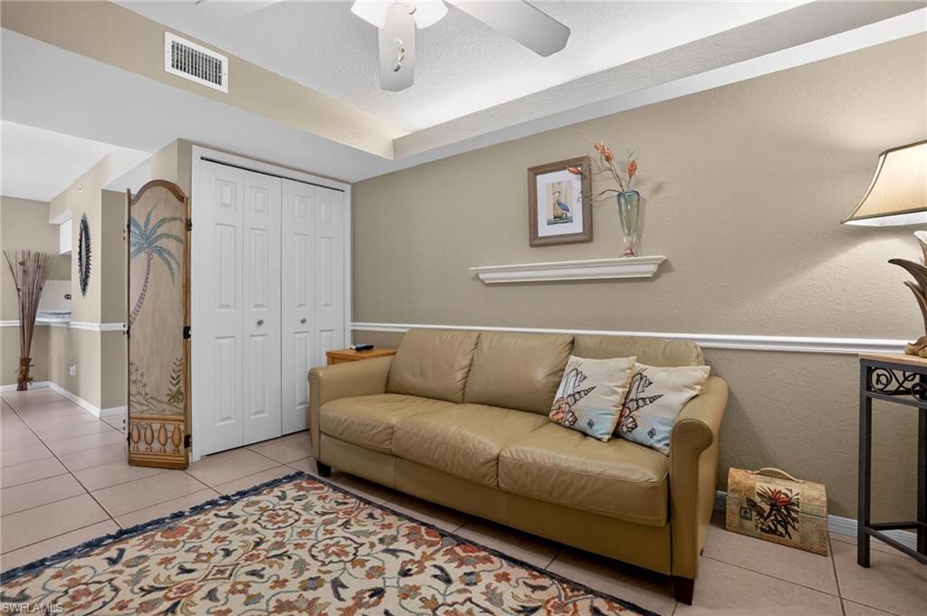Welcome to this beautifully maintained, turnkey-furnished 2-bedroom plus den, 2-bath second-floor condo with a detached one-car garage in the gated community of Bermuda Lago, ideally located west of US-41 in Bonita Springs. This bright and open floor plan offers comfortable Southwest Florida living, featuring a private screened lanai with views of the community pool and tranquil preserve—perfect for relaxing or entertaining. Bermuda Lago offers a sparkling community pool and spa, well-kept grounds, and a low-maintenance lifestyle close to world-class beaches, shopping, dining, and entertainment. Enjoy convenient access to Vanderbilt Beach, Barefoot Beach, Delnor-Wiggins Pass State Park, Coconut Point, Mercato, and downtown Bonita Springs. This residence presents an excellent opportunity for a full-time home, seasonal retreat, or investment property. All information & property details set forth in this listing, including HOA, all utilities & all room dimensions, are approximate, are deemed reliable but not guaranteed, & should be independently verified if any person intends to engage in a transaction based upon it. Seller/current owner does not represent and/or guarantee that all property information & details have been provided in this MLS listing.