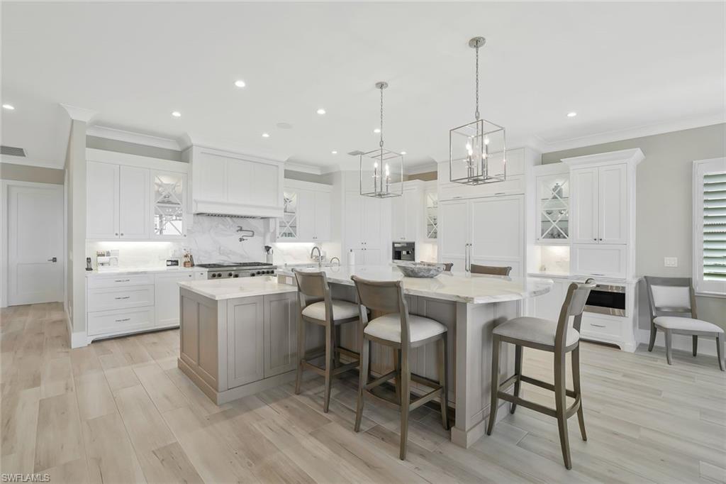 Experience extraordinary coastal luxury in this magnificent Gulf Front residence, perfectly positioned to capture breathtaking Gulf and Beach views—along with unforgettable sunsets over Marco Island. Located in the highly sought-after Tigertail neighborhood, this exceptional home is less than 1,000 feet from direct access to the Tigertail Beach access. Offering over 6,700 square feet of living space and more than 14,000 square feet total, this stunning estate is designed for both grand entertaining and comfortable everyday living. The home features five bedrooms, five full baths, two half baths, two private dens, wood-look tile, and provides ample space for family and guests alike. A true dream for car enthusiasts and collectors, the residence boasts an impressive 8-car garage, ideal for showcasing prized vehicles, housing outdoor toys, or accommodating a serious hobbyist’s needs. Thoughtfully designed to maximize the spectacular views, the main living areas open to expansive terraces on every level. The gourmet kitchen is a showpiece, featuring a spacious L-shaped island with Carrera marble countertops, Wolf and Sub-Zero appliances, a Miele built-in coffee system, and an adjacent dining area perfect for entertaining. The main living space is highlighted by a beautiful gas fireplace, built-in illuminated cabinetry, coffered ceilings, and a large balcony overlooking the shoreline. Upon entry, a dramatic cascading staircase with shell stone treads sets the tone for the refined elegance found throughout the home. The ground level offers a generous rec room, pool bath, and a custom-designed resort-style pool and spa with beach entry and built-in table—ideal for relaxing or entertaining. Relax by the pool and entertain with the outdoor kitchen. Offering an oversized, fully fenced backyard make this property perfect for dog lovers, offering plenty of room for pets to run and play in privacy. The second-floor features four additional bedrooms, including a second primary suite, a family/game room, dog watering system, and a den. Elevator access to all levels, laundry facilities on every floor, and abundant storage throughout enhance the home’s comfort and functionality. This exceptional Marco Island estate seamlessly combines luxury, lifestyle, and location—an unparalleled opportunity to enjoy coastal living at its very best.