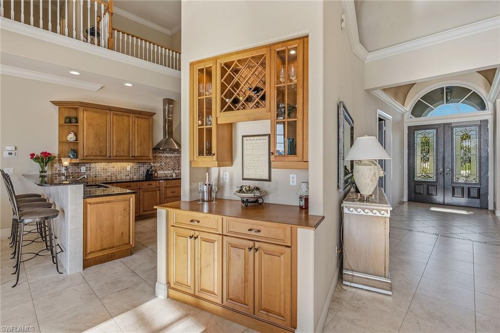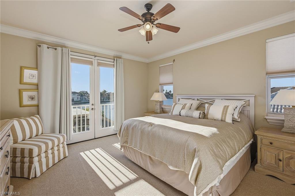 Welcome to this custom-built home with stunning water and sunset views! Go inside and feel immediately at home. This thoughtfully designed split floorplan accommodates families of all sizes with five bedrooms (including a versatile bunk room) and four en-suite baths, plus a half bath. Architectural details elevate every space, including soaring 20-foot volume ceilings, elegant barrel and coffered designs, decorative niches and crown molding throughout. Arched windows flood the rooms with natural light, while your study with custom cabinetry is the ideal retreat to stay on top of your business. The home flows beautifully from gourmet kitchen to family room and great room, with a convenient dry bar that makes hosting a breeze. Enter through panoramic impact doors onto your expansive screened lanai, complete with heated pool and spa, where indoor and outdoor living blend seamlessly. Whether you are dining alfresco, sunbathing by the pool, or simply soaking in the wide water and north-south canal views, you will find a spot to unwind. Your private dock offers a tranquil escape. The first floor features a luxurious main suite and guest suite, both opening directly to a peaceful lanai sitting area. The main bath is your personal spa with private water closet, dual sinks and shower heads, an expansive walk-around shower and a separate soaking tub, ideal for unwinding after a sun-filled Marco Island day. Three upstairs bedrooms share access to a screened second-floor balcony through a charming sitting room, an ideal retreat for morning coffee, afternoon reading or sunset yoga sessions. One bedroom features a Juliet balcony where you can throw open the doors and let the sights and sounds of the water wash over you. Centrally positioned on the Island, you are minutes from exceptional dining, shopping, local attractions and miles of pristine beaches. Offered turnkey, ready to move in and live the dream.